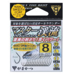 マスター渓流最大の特徴は、「刺さり込みの良さ」と「強靭さ」の両立。高い貫通力を備えた狐型フォルムとタワミを抑えた強靭設計がアワセの力を効率よく鈎先へ伝え、低摩擦コーティング「ナノスムースコート」が抜群の刺さり込みを実現させました。見た目の強靭さから想像もできない刺さり込みの良さは、従来の太軸鈎にありがちな「鈎先が口の中に立っているだけで刺さり込んでいない状態」を激減させました。素材には高靭性素材「T1」を採用し、フトコロ強度を高めた形状と相まって大型渓流魚にも余裕をもって対応します。また、強靭でありながら餌刺しもスムーズに行え、アワセの効きにくい小型渓流魚にもしっかり刺さり込む万能性も併せ持ち、対象魚・サイズを選ばない渓流オールラウンダーと呼ぶに相応しい仕上がりとなりました。