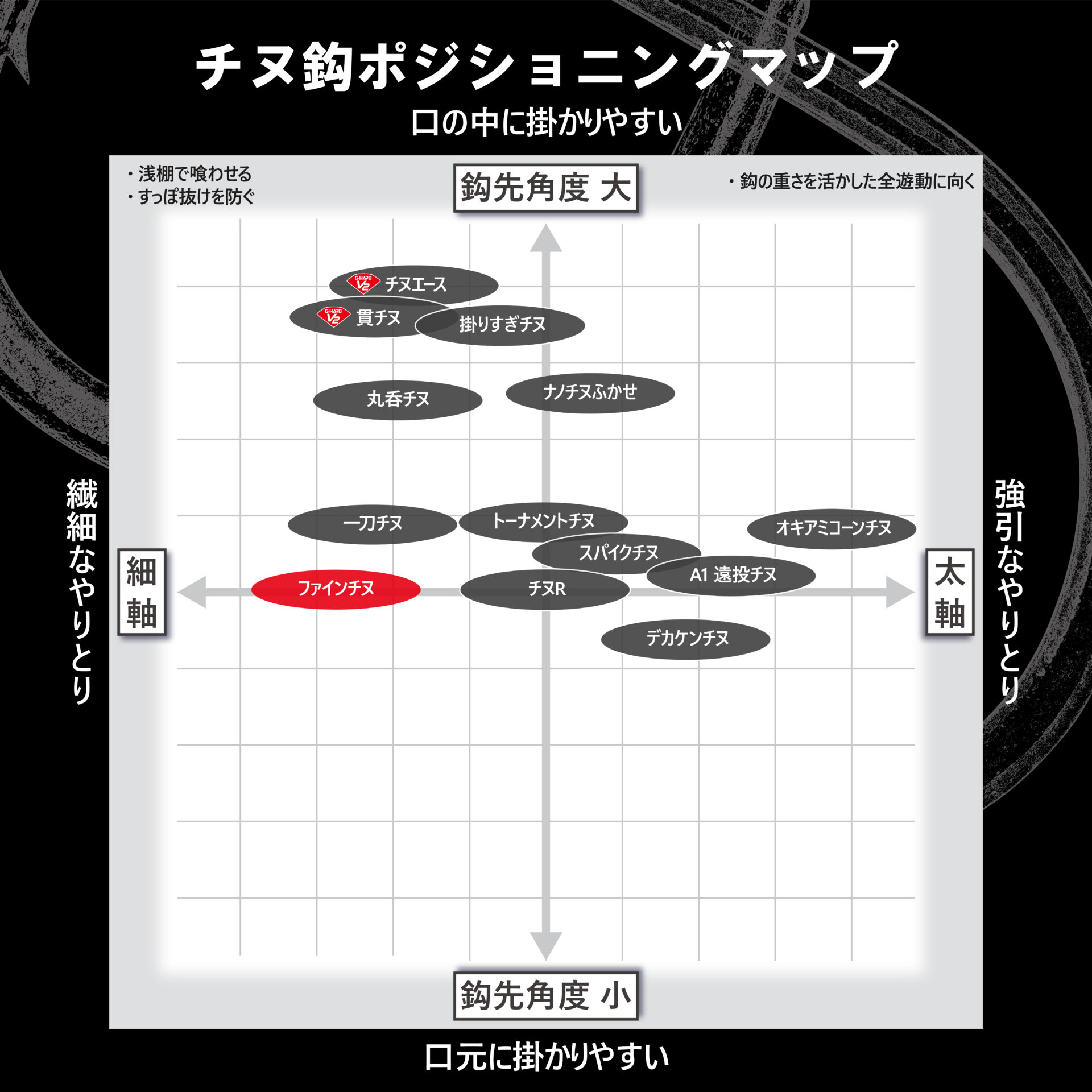 「いかにサシ餌を同調させるか」をコンセプトに、近年の繊細なチヌ釣りに対応した細軸軽量モデルです。細軸と短軸フォルムによる軽量設計がサシ餌の自然な沈下を演出し、中層を意識したチヌにも強くアピールするとともに、サシ餌を底に這わせた際も、わずかな誘いでサシ餌が敏感に反応することにより、警戒心の高いチヌにも違和感なく口を使わせます。吸い込まれた鈎は、チヌとのコンタクト性を重視した立ち上がり気味の鈎先が口元を捉えるとともに、細軸による高い貫通性能が硬い口元への刺さり込みを確実にします。カラーはオキアミに馴染み、鋭利な鈎先を保つ「パールホワイトカラー」を採用しました。