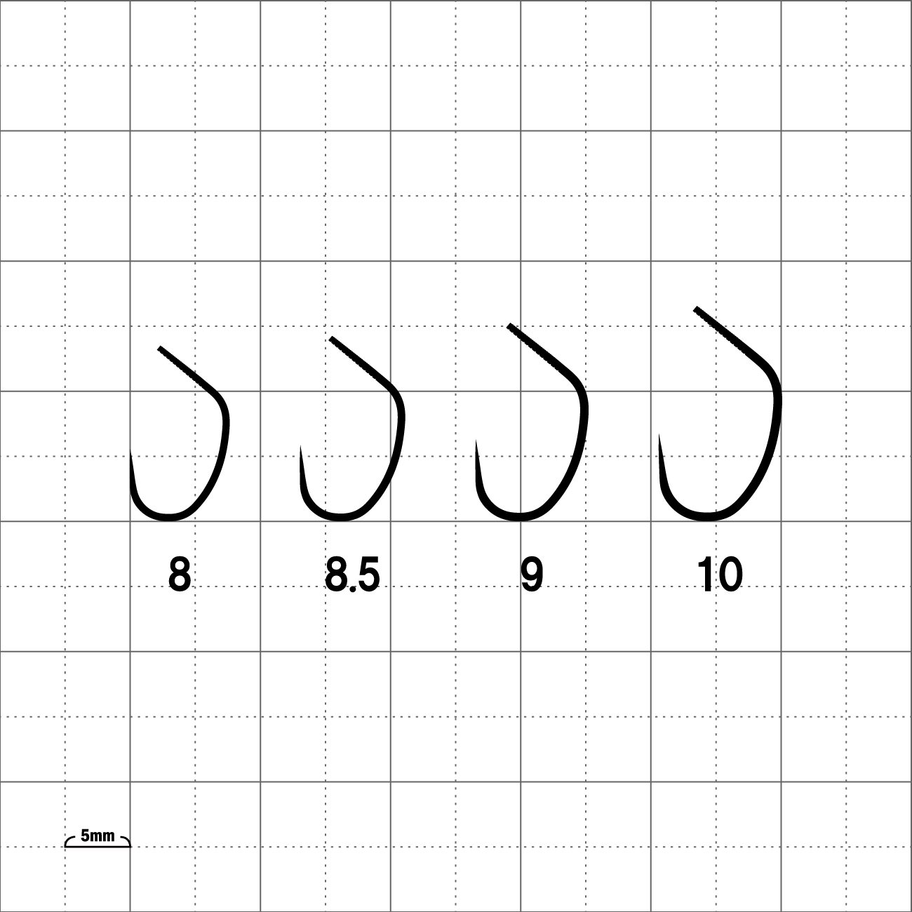荒瀬・激流等の高水圧下における身切れを最小限に抑えることを目標に開発。野鮎に深く刺さり込むストレート鈎先と、魚体を広く抱え込むワイド形状が身切れの原因となる浅掛かりを防ぎ、当社最太クラスの軸径設定が鈎傷を最小限に抑えることで、高水圧下における長時間のやり取りにおける高いキープ力を発揮します。また、刺さり込みの良さを損なわない程度に鈎先を僅かに鈍角化させたことで、鈎先の耐久性が大幅に向上し、厳しい使用状況下においても鋭さが持続します。荒瀬での使用や大鮎とのやり取りの際に微塵の不安も感じさせないスペシャルフックの登場です。