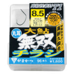 荒瀬・激流等の高水圧下における身切れを最小限に抑えることを目標に開発。野鮎に深く刺さり込むストレート鈎先と、魚体を広く抱え込むワイド形状が身切れの原因となる浅掛かりを防ぎ、当社最太クラスの軸径設定が鈎傷を最小限に抑えることで、高水圧下における長時間のやり取りにおける高いキープ力を発揮します。また、刺さり込みの良さを損なわない程度に鈎先を僅かに鈍角化させたことで、鈎先の耐久性が大幅に向上し、厳しい使用状況下においても鋭さが持続します。耳付きで、チラシ・ヤナギ仕掛作成に最適です。