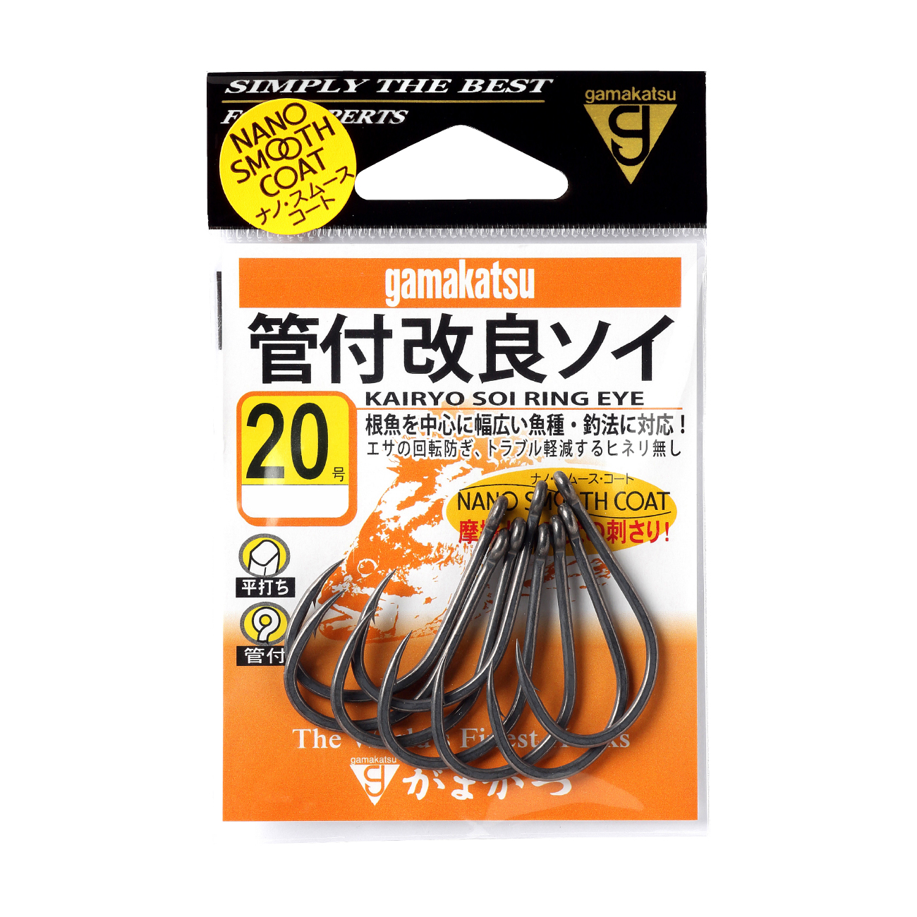 様々な釣りに使える万能鈎として多くの釣り人から支持を得ている管付ソイ鈎に新たなタイプが加わりました。エサの回転を防ぎ、高い貫通力を発揮するヒネリ無し仕様 、若干の短軸化による鈎立ち速度がアップ。太ハリスも結びやすく仕掛交換も容易な管付き仕様。根魚以外にも幅広い魚種・釣法に対応したオールラウンドフックです。