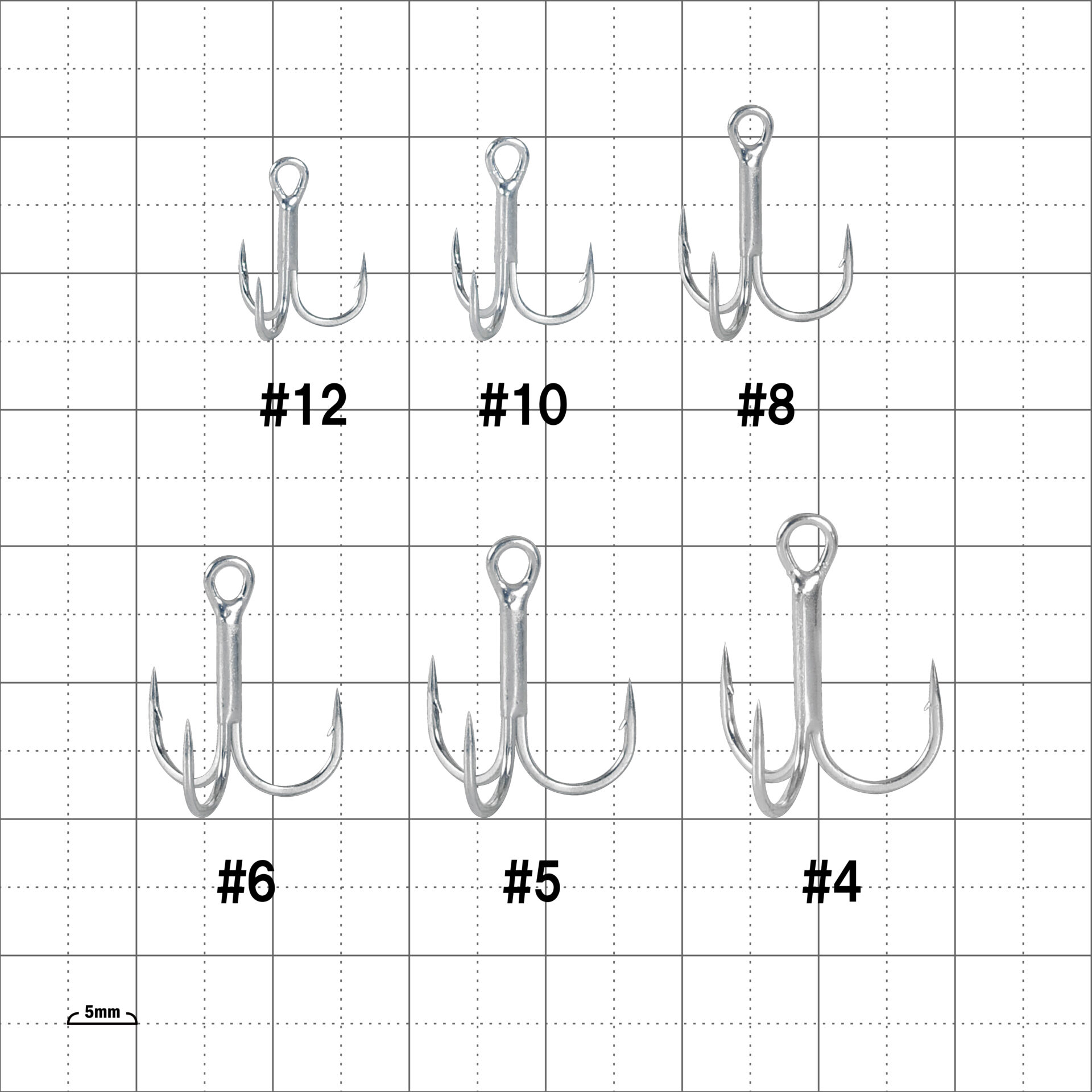 「ザ・スタンダード」をコンセプトに作り込み、幅広いターゲット・ルアーに高次元対応。フックに掛かる負荷を均等分散させ、フックの変形・身切れによるバラシを防ぐ「パーフェクトラウンドベンド」。各サイズ別にワイヤー設定を吟味した「バリアブルプランワイヤー」により、小型号数であっても想定外の大物に耐え、大型号数であってもスムーズな刺さり込みを可能にしました。鈎先は、刺さり込みの良さと耐久性を両立させた「スタンダードテーパー」。ルアーのスイミング姿勢を崩さず、最適なフックポジションを実現する「センターバランスアイ」。表面処理は、高い防錆効果を発揮する「シルバーメッキ+クリア樹脂コート」。ヘビーユーザーの要望に応える「徳用パック」もご用意しました。