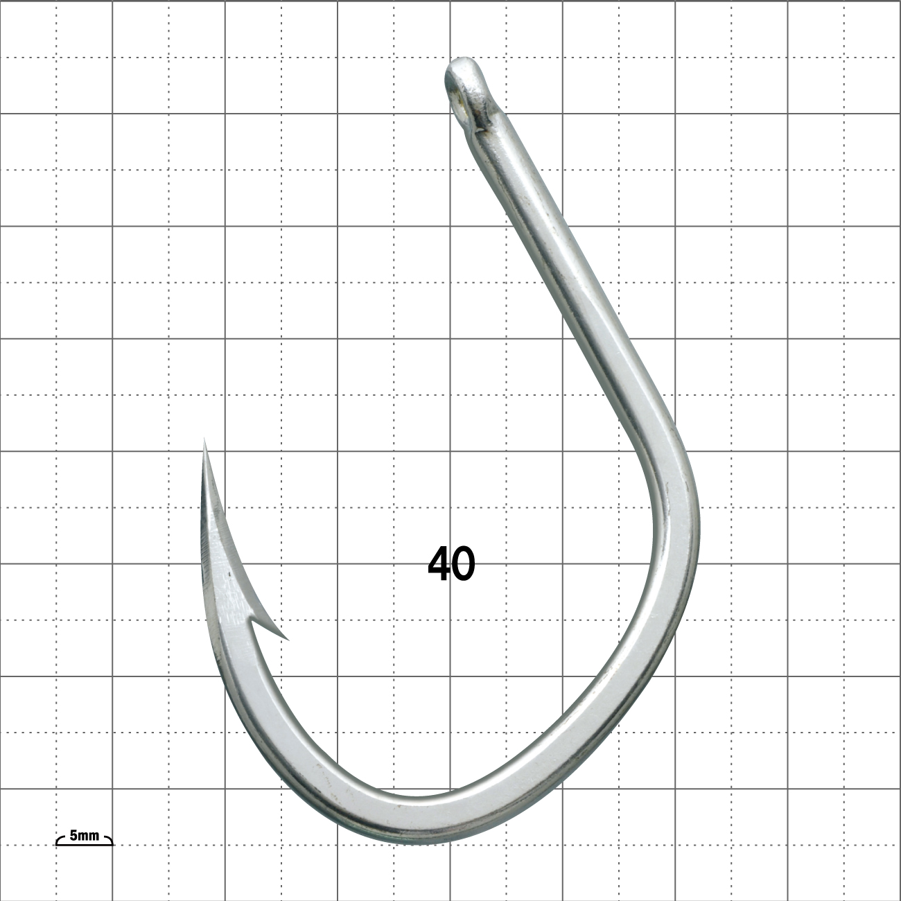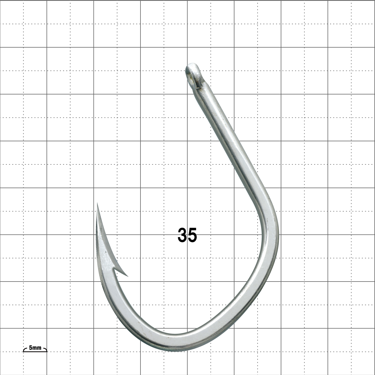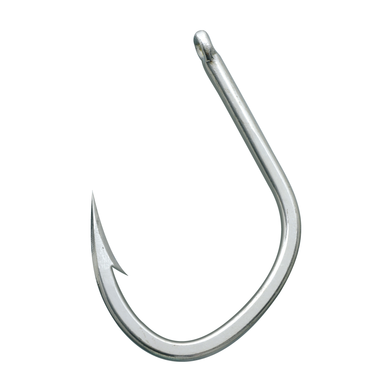 とてつもなく巨大なクエを相手にするための鈎です。想像を絶する引きにも余裕をもって耐えます。掛かりを良くするために鈎先を少し開いてあります。