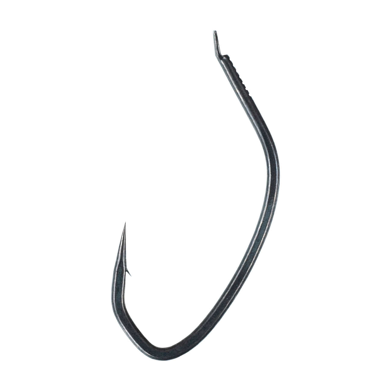 改良マゴチは、エビ餌の姿勢を安定させるフラットなフトコロ形状、餌刺しの際の鈎先位置を把握しやすいストレート鈎先、エビ餌の頭部からわずかに露出する鈎先など、マゴチ鈎に必要不可欠な要素を備えつつ、太軸により近距離における力強いアワセやマゴチの硬い上顎に負けない力強さを手に入れました。太軸でありながらも「半スレ」によりエビ餌が弱りにくく、低い貫通抵抗による抜群の鈎掛かりの良さも特徴です。結束部は、太ハリスを使用した際のハリス抜けを防ぐ「幅広タタキ」を採用し、実釣性能に更なる磨きを掛けたマゴチ専用鈎の登場です。