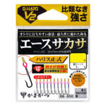 度重なる実釣テストにより導き出された、スッと刺せて抜け落ちにくい鈎先とフトコロ形状。全長を長めに設計することにより持ちやすく、水中での安定感が増すことによりサカサの抜け落ちが減少。高硬度素材「G-HARD V2」によりサカサの命ともいえる「鈎先の鋭さ」が長時間持続。軽量でハリスのセットが簡単な「フック式」とタモ絡みのトラブルが少ない「ハリス止式」をラインナップ。