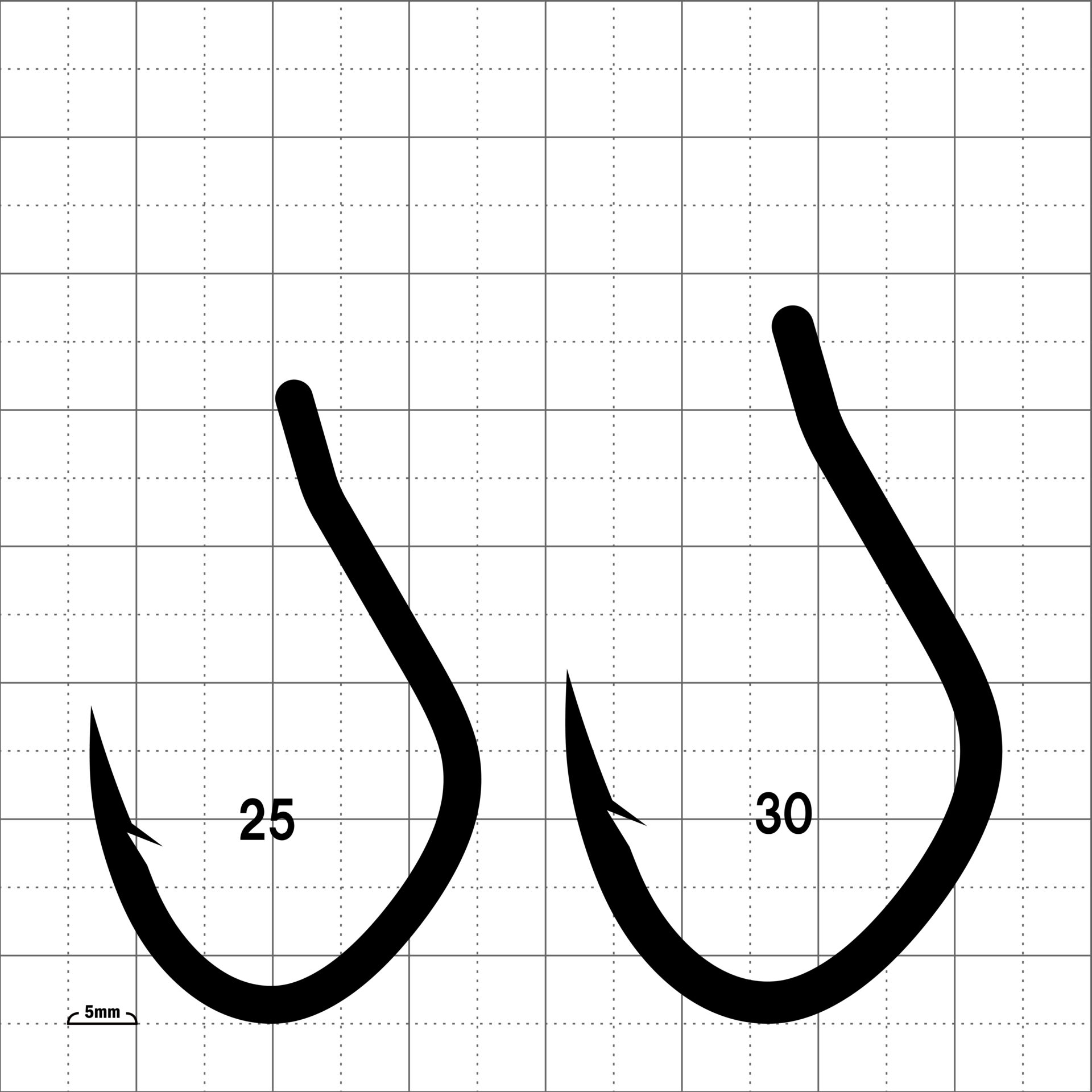 プラッギング用シングルフック目安
