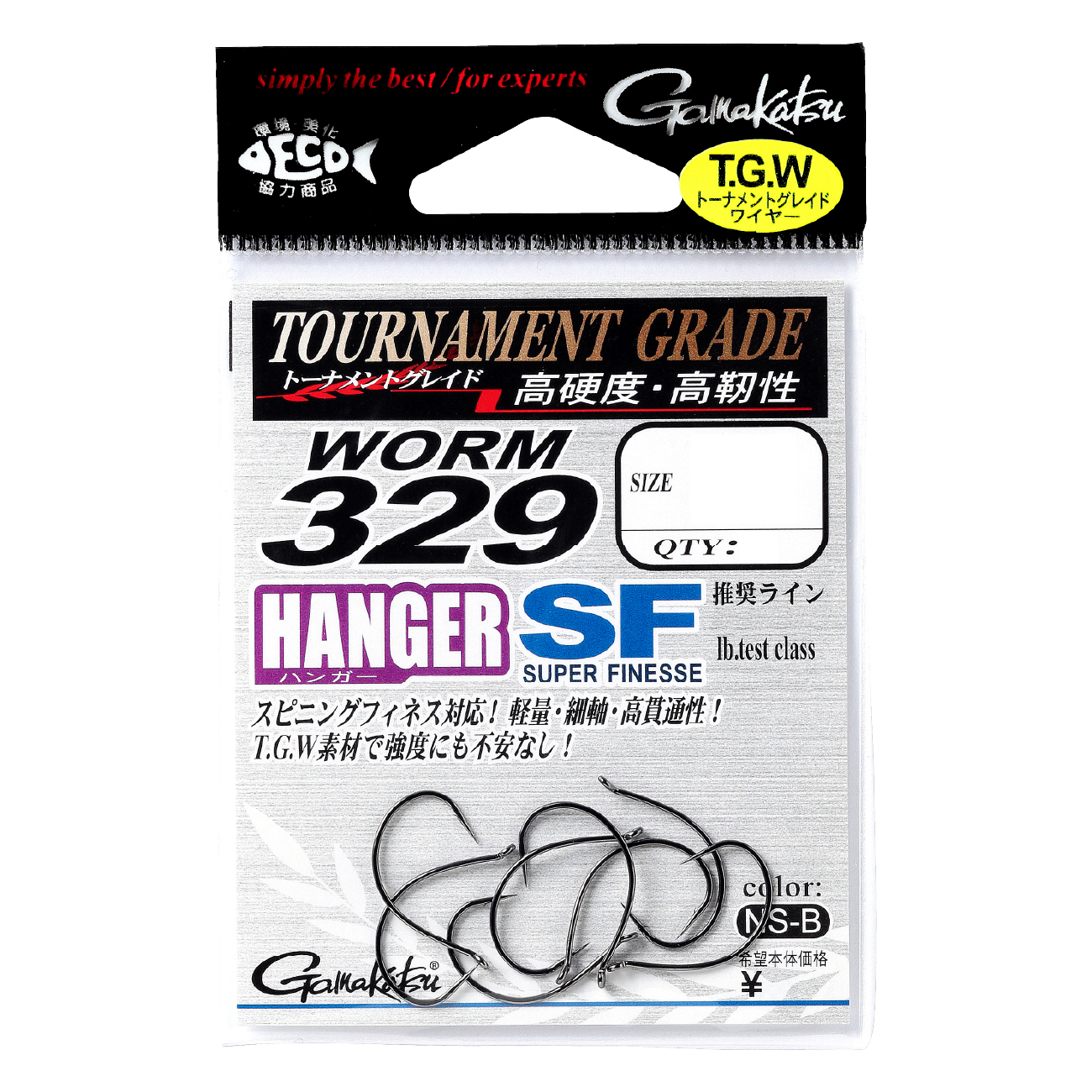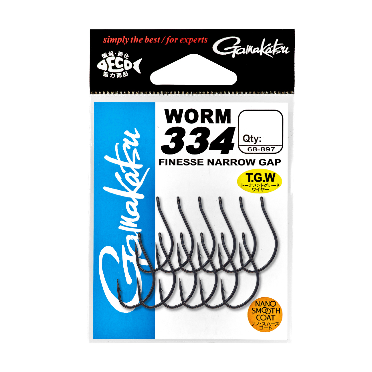 過熱するアメリカのトーナメントシーンにおいても、フィネスなアプローチが有効な場面は数知れず、1匹の釣果が大局を左右する場面で、ミスを極限まで減らすことに焦点を当て、ワーム 334は開発されました。ワーム 334は鈎先の角度を大きく設計し、フックポイントが立ちやすいデザインなので、バイトに対して即アワセで掛けにいくスタイルに高い適性を示します。ドロップショットリグやネコリグなど、あらゆるフィネスアプローチに対応しつつ、フックアップ率を計算し尽くしたデザインが特徴です。ワーム 334の釣鈎専用特殊鋼材 T.G.Wは鈎先の耐久性が高く、ナノスムース仕上げで貫通力も抜群。高強度・高靭性の素材特性を活かした細軸仕様ながらビッグバスとのやり取りにおいてもアングラーのパフォーマンスに応える、最高のフィネスフックのひとつです。