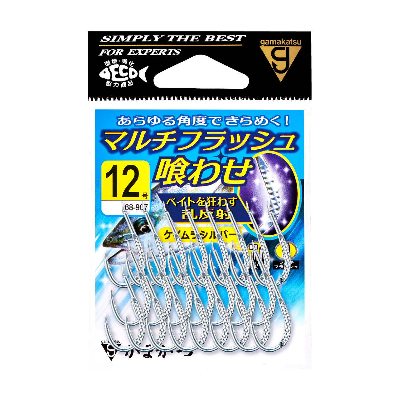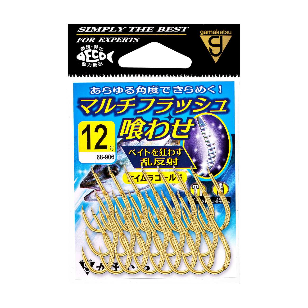 鈎の胴打部分に施した「マルチフラッシュ」が光を乱反射!ケイムラコートと相まって、ベイトの捕食本能を刺激!チモト部は、太ハリスを結びやすいワイドヘッドを採用。大物にも安心の太軸強靭設計。
