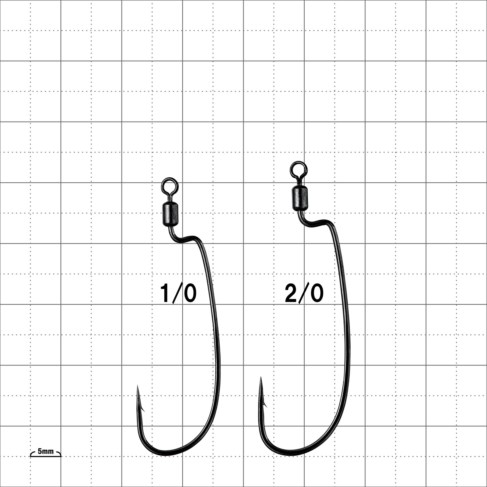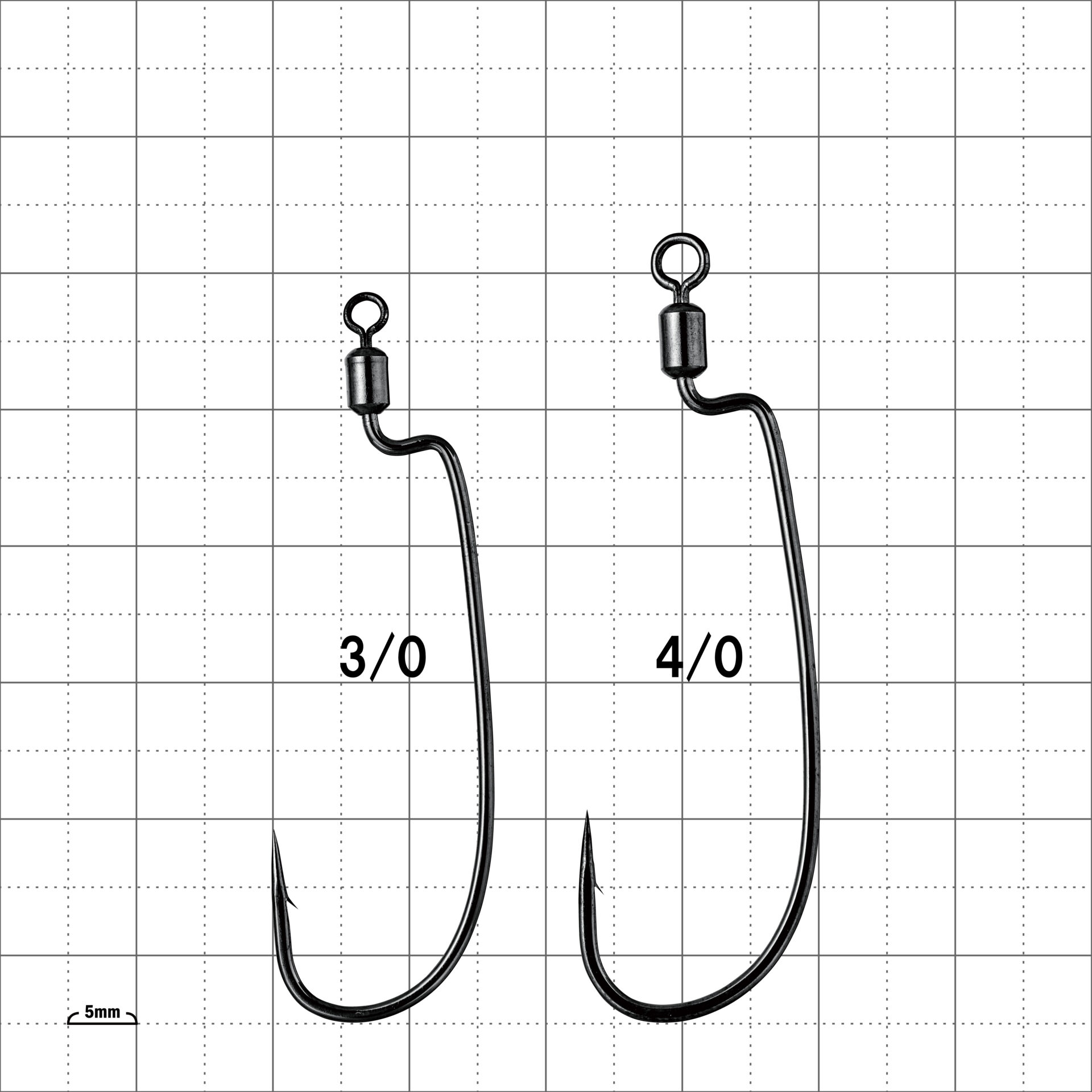 ノーシンカージャーク系のワームで、回収時に回転することによる糸ヨレを軽減します。スイベルと鈎を一体化することで、よりシンプルに強度を保つことが可能になりました。ナローギャップのワーム34Rの特徴はそのままに、ノーシンカーのボトムジャーク系・スティックベイト系との組み合わせも有効です。