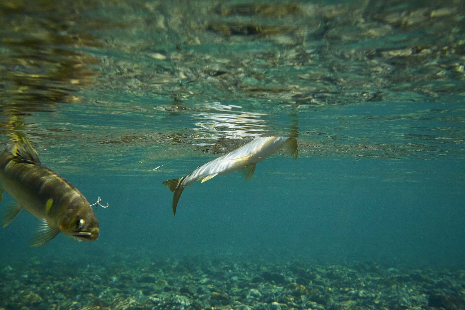 より遠くが釣れる10mのアドバンテージ。警戒心が強い渇水期の野鮎を手玉に取る がま鮎競技スペシャルV8 極泳がせ 100