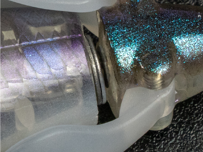 金属ワッシャーを2枚入れることでウィングの回転を滑らかにするだけでなく、ワッシャーが接触する金属音がバスを強烈に刺激します。