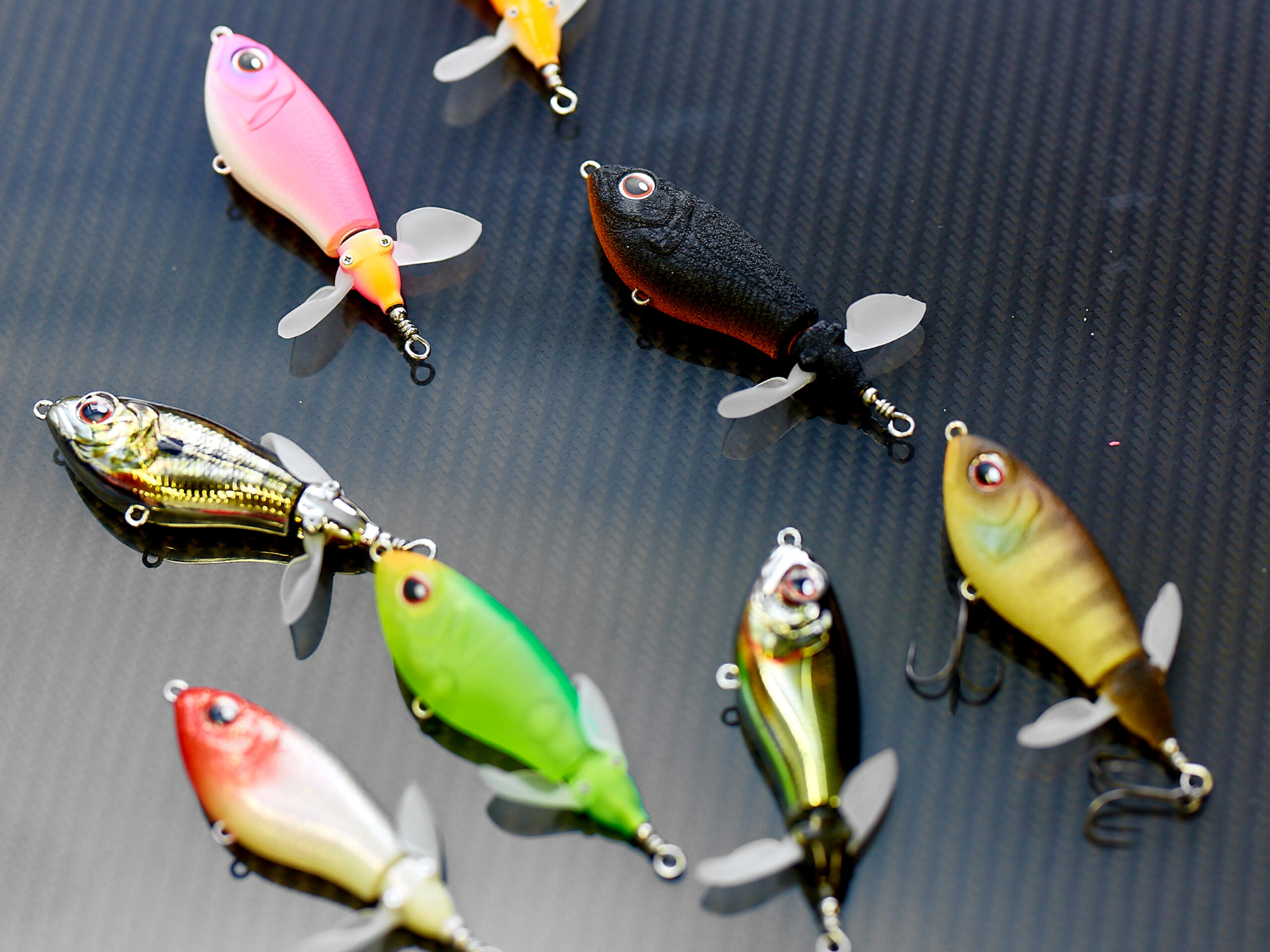 塗装はすべてアベンジオリジナルカラー。リンクルブラックとリンクルギルには溶岩のごとき凹凸のある塗装を施し、水面に絡みやすくさせました。
