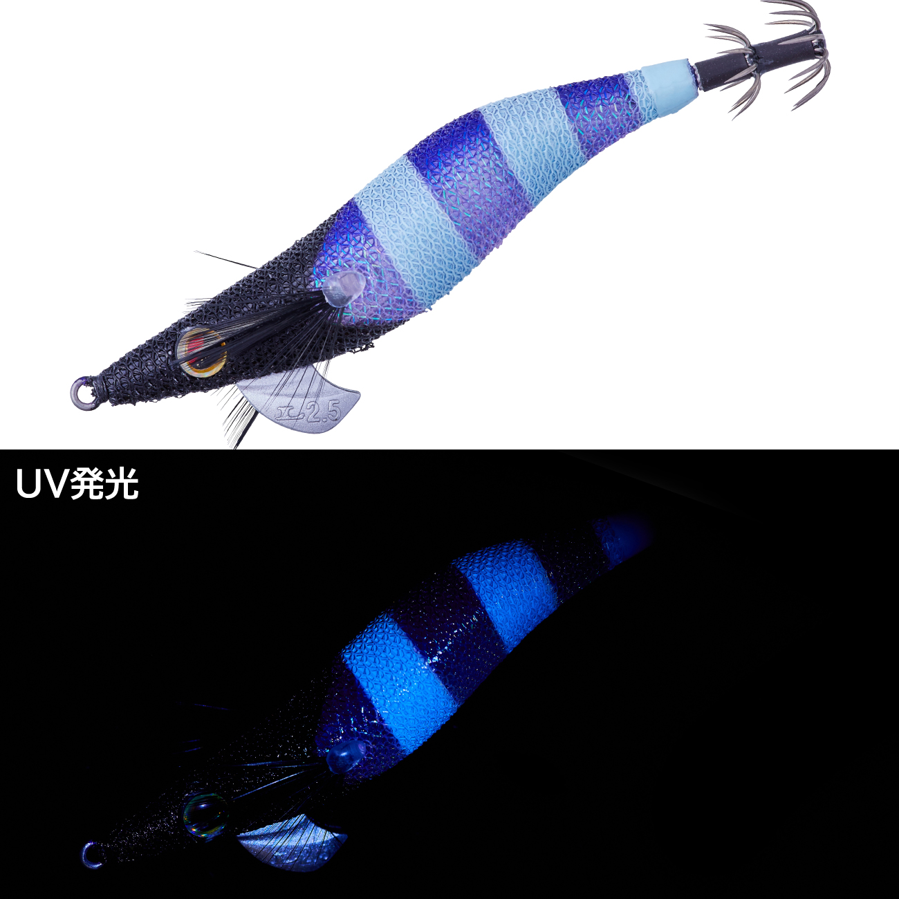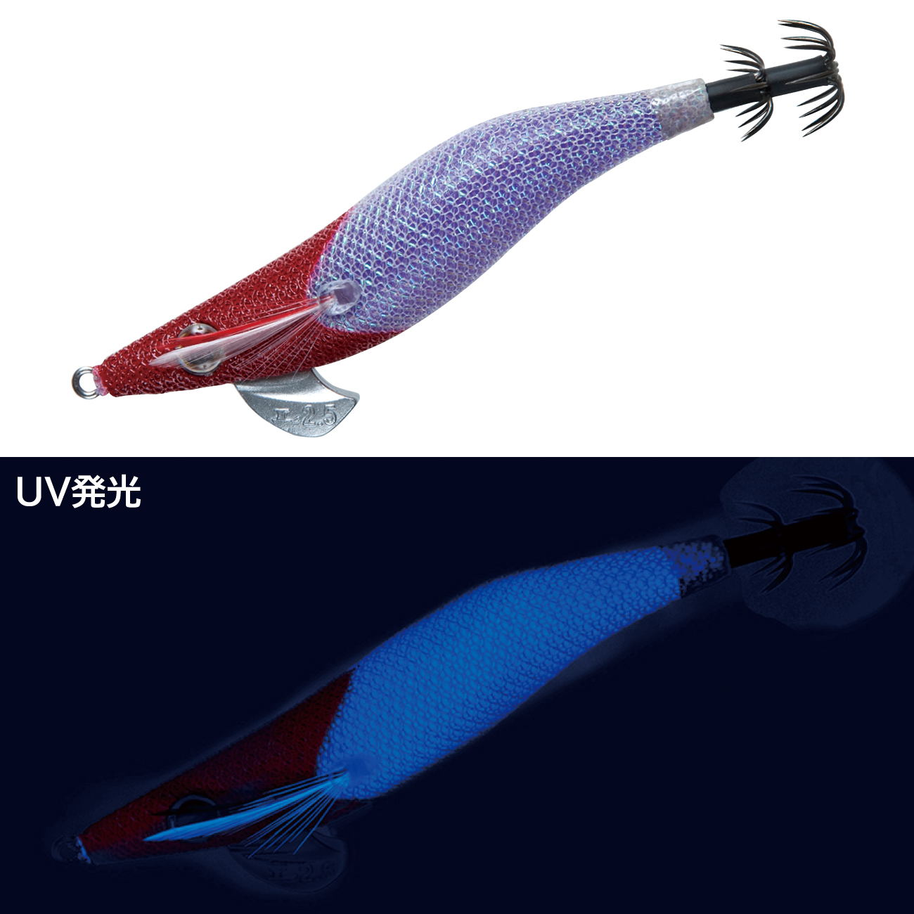 光量の多い時間帯や浅ダナで高実績のUV発光クリアパープル系カラーです。