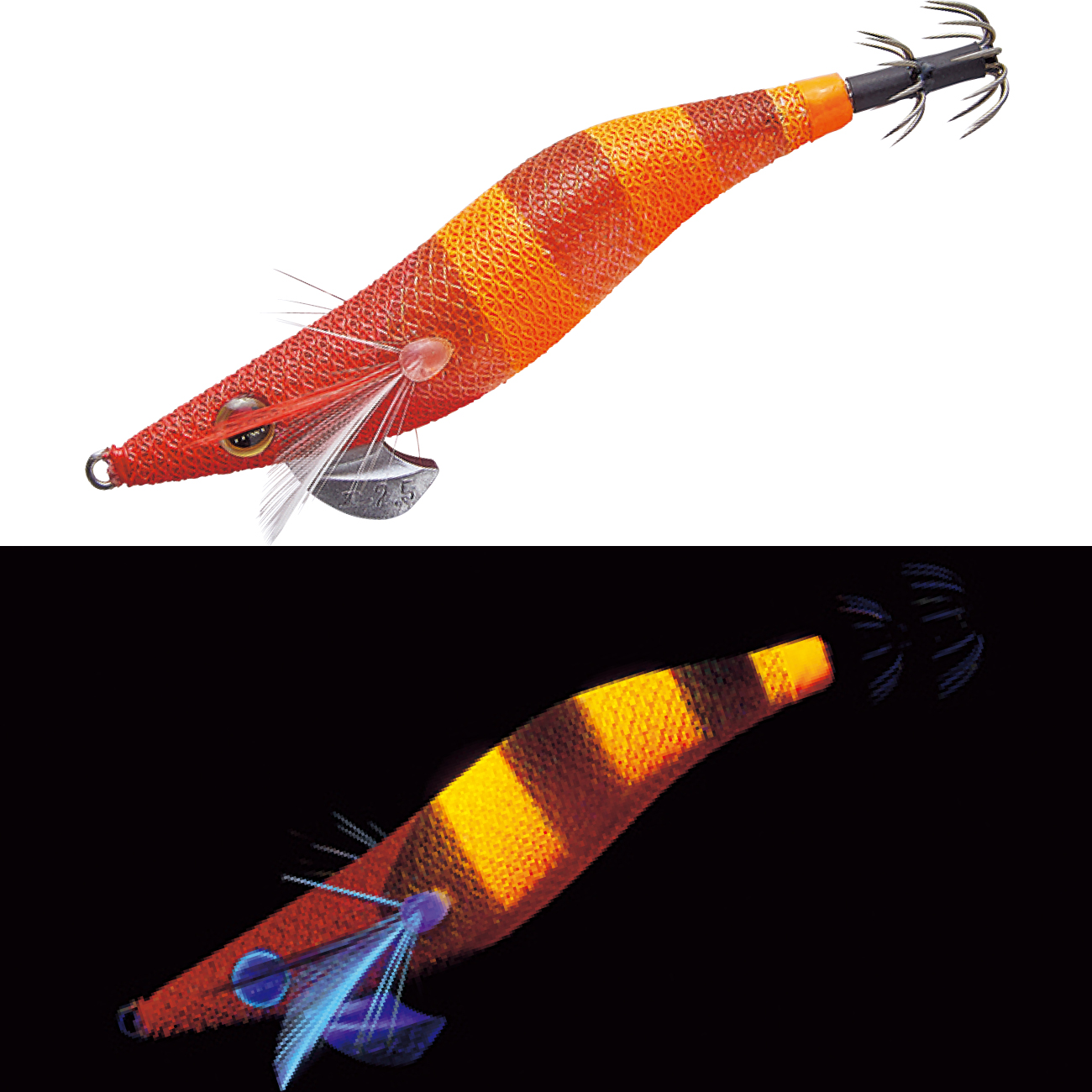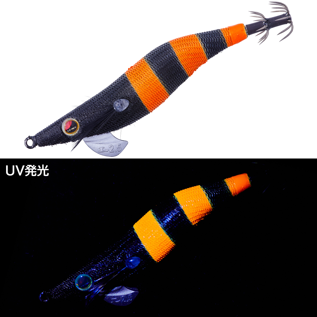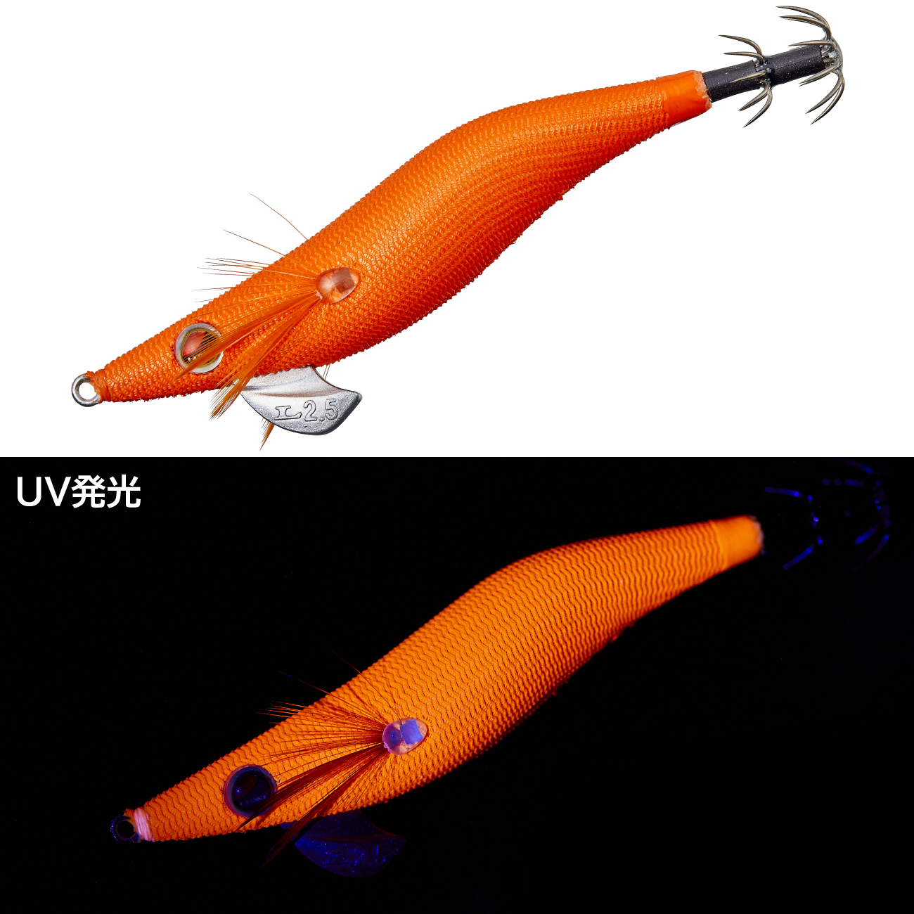 時として爆発的な釣果を叩き出すオレンジ系カラー、その中で最もアピールの強い全面非透過系UV発光カラーです。