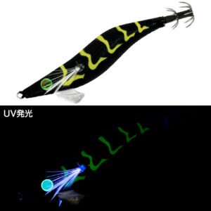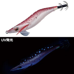アピール力の強いパールホワイトボディにブルーグローを施したカラーです。早春のヤリイカ狙いにも効果的です。