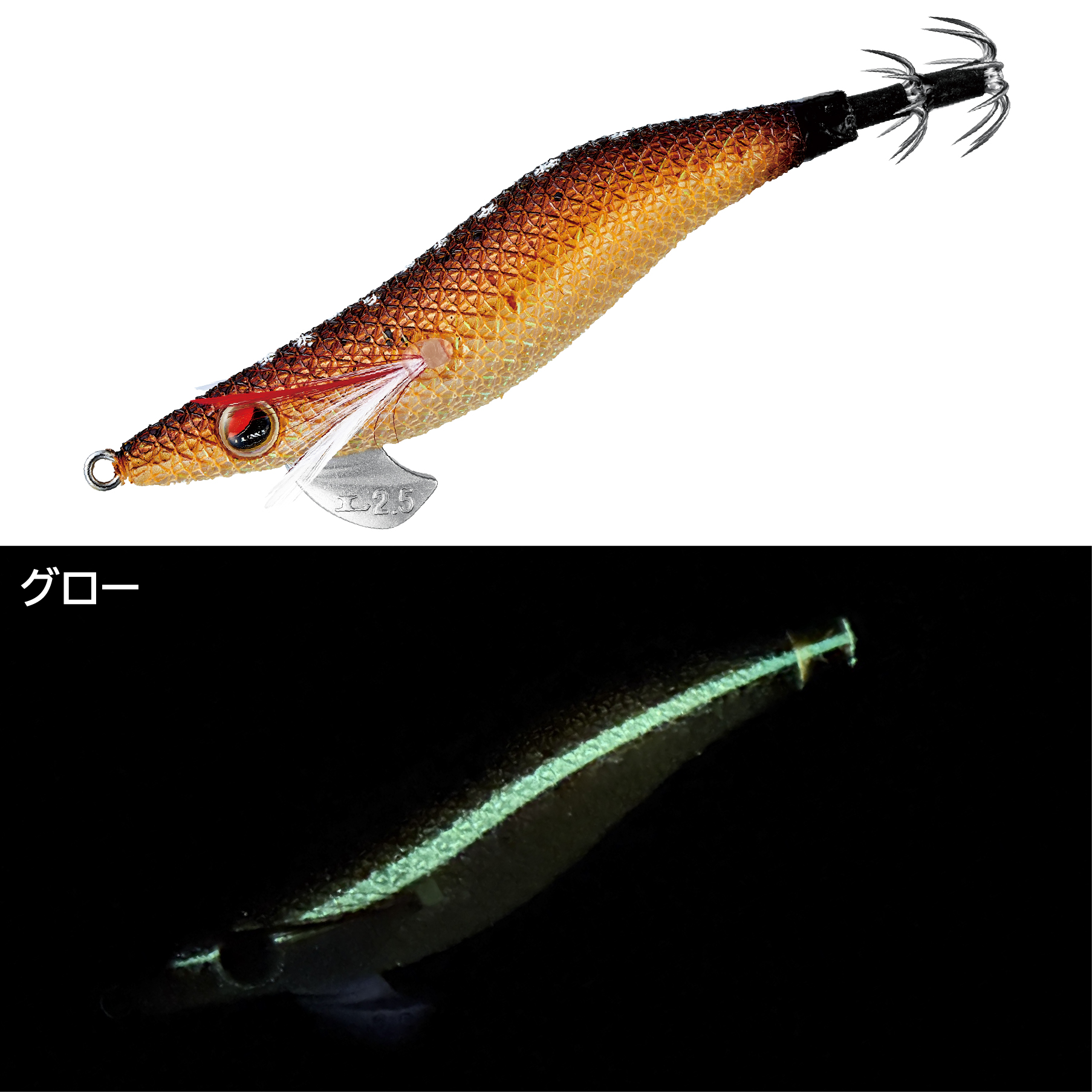 古くからイカ釣り漁師の間でも定番として君臨するレッドカラー。イカをスレさせにくく、低活性時にも効果的なカラーです。定番カラー故にシンプルなカラーリングに仕上げております。