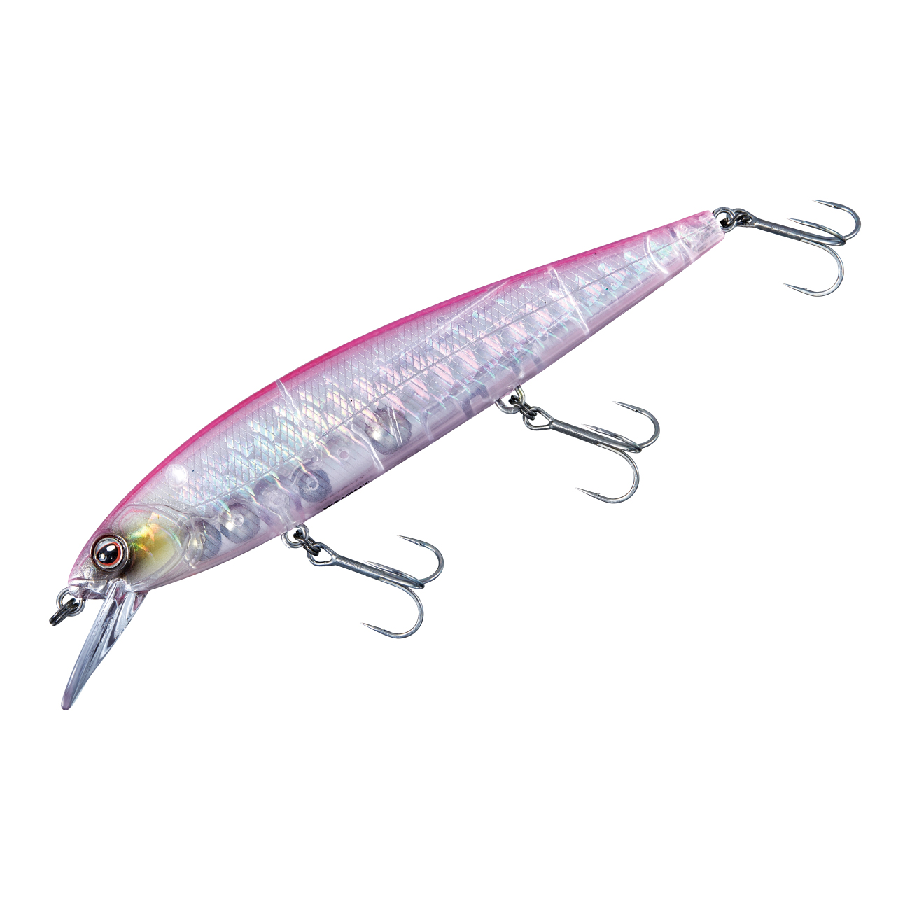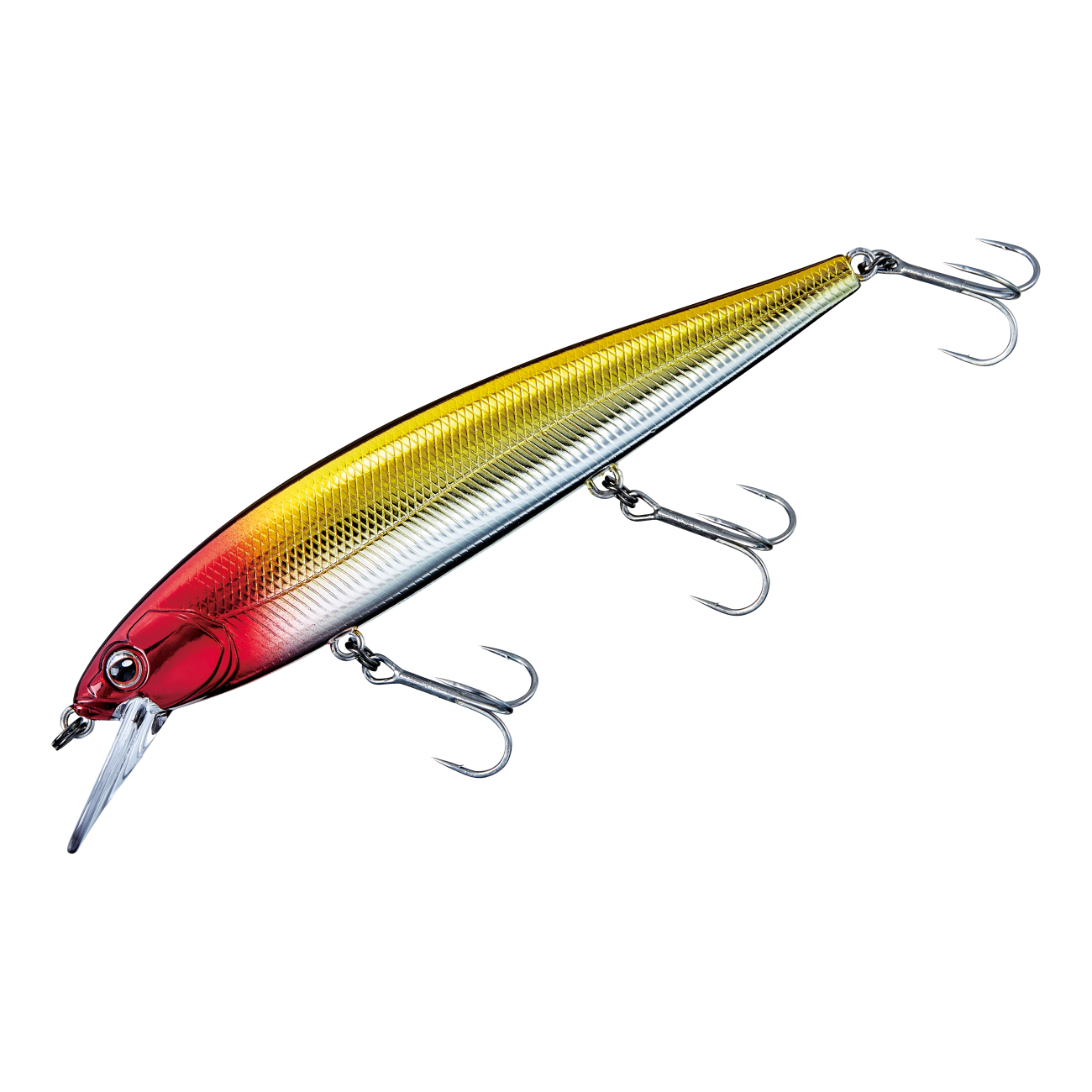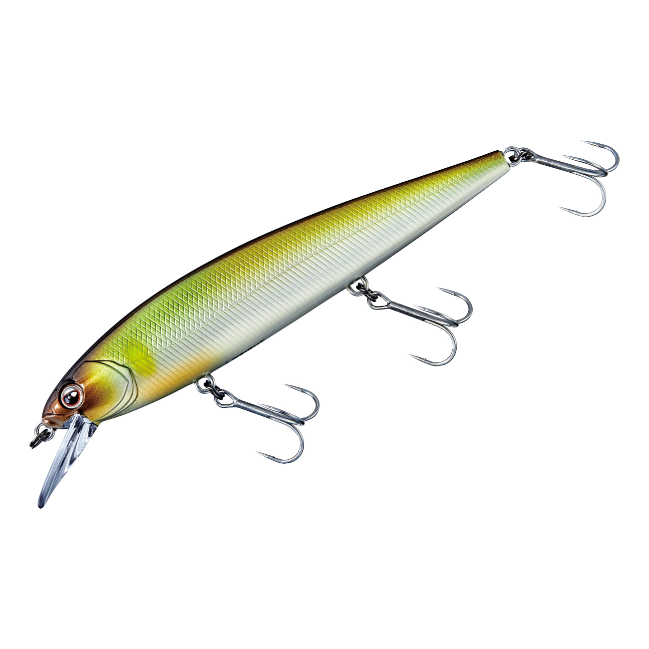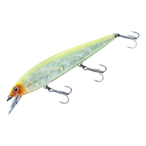 リトリーブアクションを高めるために安定性を求めれば、ジャーク時にキレがなくなります。そのため、アベンジミノー 110Fはリトリーブアクションの安定性を保てる限界までリップを薄くし、ボディのヘッドとテールを細くすることで、1日やり切れるキレのあるジャークアクションと軽い引き心地を備えます。