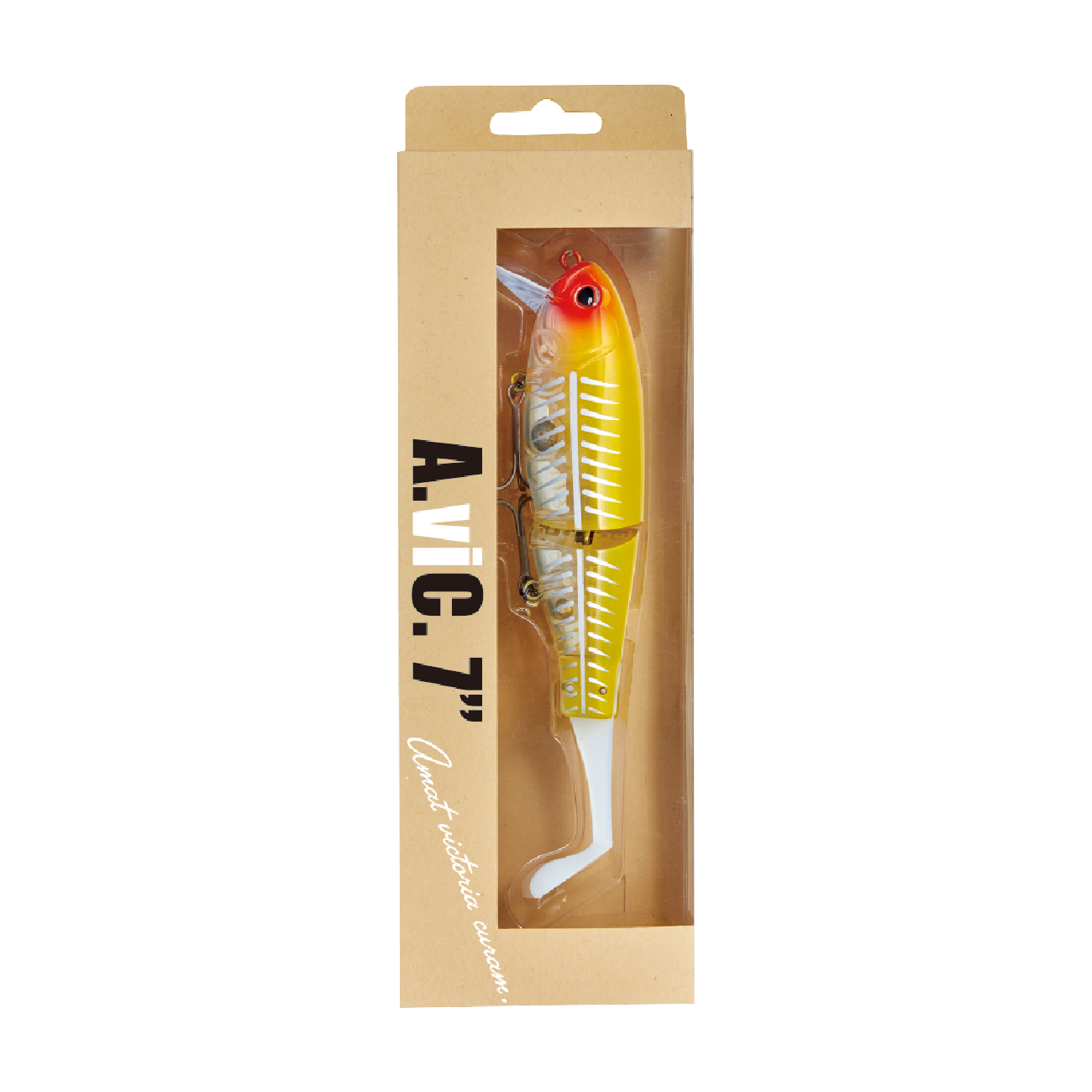 ルアーが完全に水面を割らない、水面下数センチの絶対領域。魚を強烈に反応させるそのレンジを攻略するためのルアーがAviC 7”(アヴィック7インチ)です。アヴィックにはハンドメイドルアーが持つ“水を掴みながら絶妙に揺らぐ釣れるアクション”を実現する、ルアーデザイナー赤松拓磨の方程式を組み込んでいます。揺らぎのあるアクションは多くの魚を反応させますが、揺らぐことで生じるアクション波動の乱れはルアーが見切られる原因にもなります。そこでアヴィックは波動を乱さずに揺らぐアクションの実現を目指しました。リップ角度に対して、ウエイト位置をあえてアンバランスに配置する事で、アクションを大きく乱し、それを制御する為のテールを設計。この乱しと制御のバランスを取ることで、アクションが抜けて揺らぐのでは無く、しっかりと水を掴みながら軌道が揺らぐアクションを実現しています。