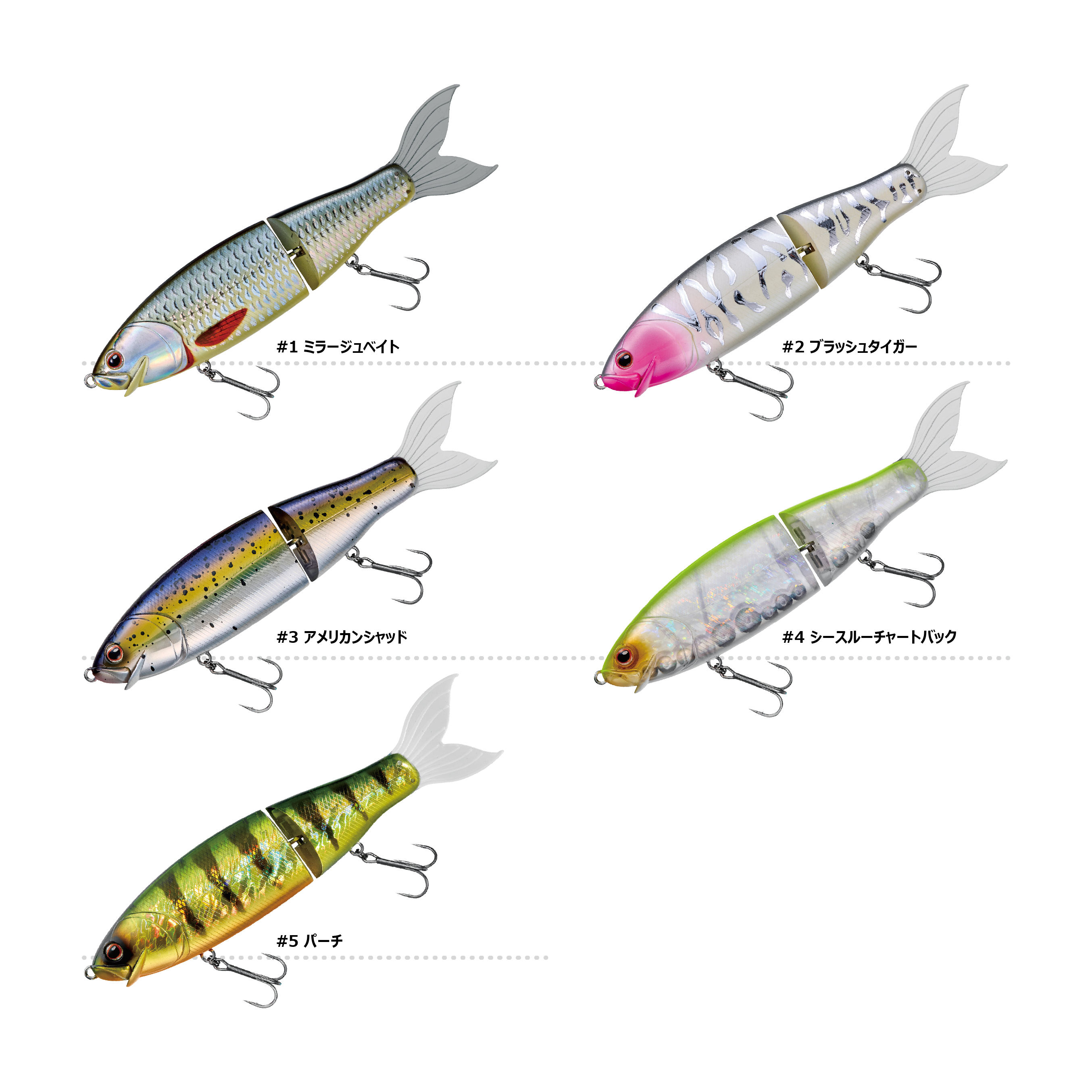 #1 ミラージュベイト#2 ブラッシュタイガー#3 アメリカンシャッド#4 シースルーチャートバック#5 パーチ