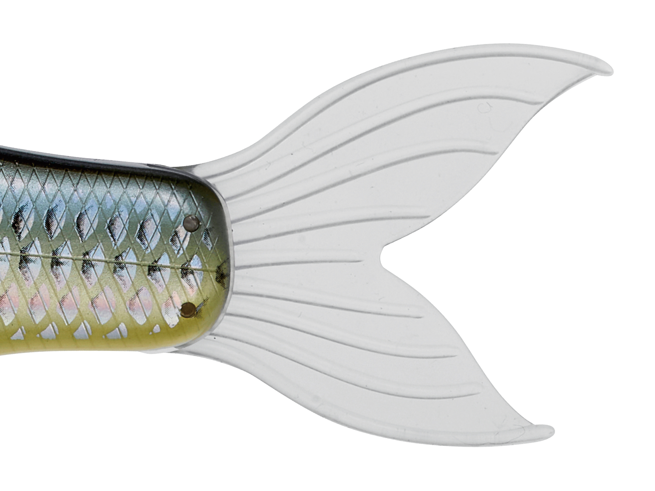 軟質シリコン素材のテールが常に水を掴むことでコンパクトかつクイックなアクションを生み出し、ピンスポットでの誘いが可能です。ただ巻きではロールを伴うタイトなS字アクションで魚にアピールします。