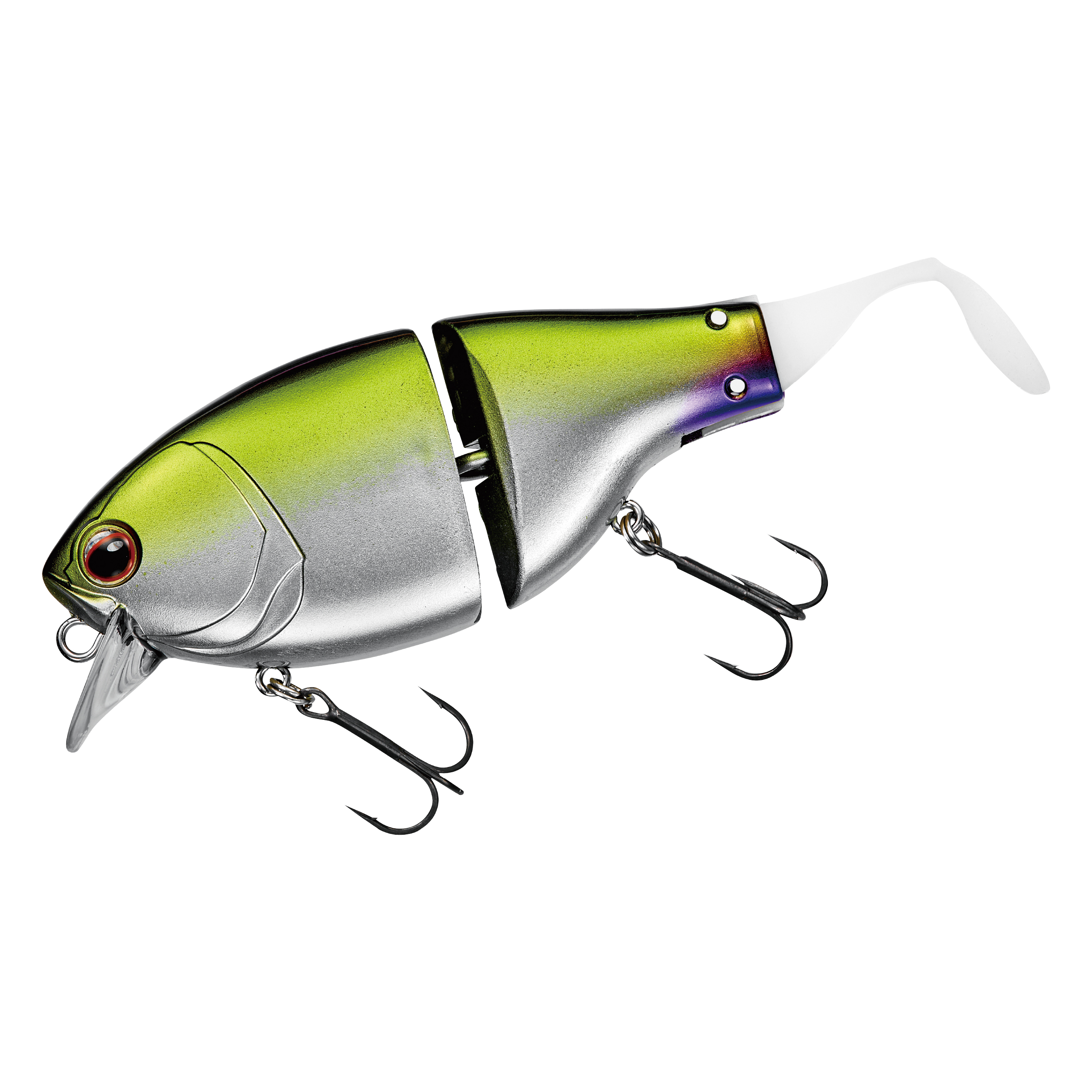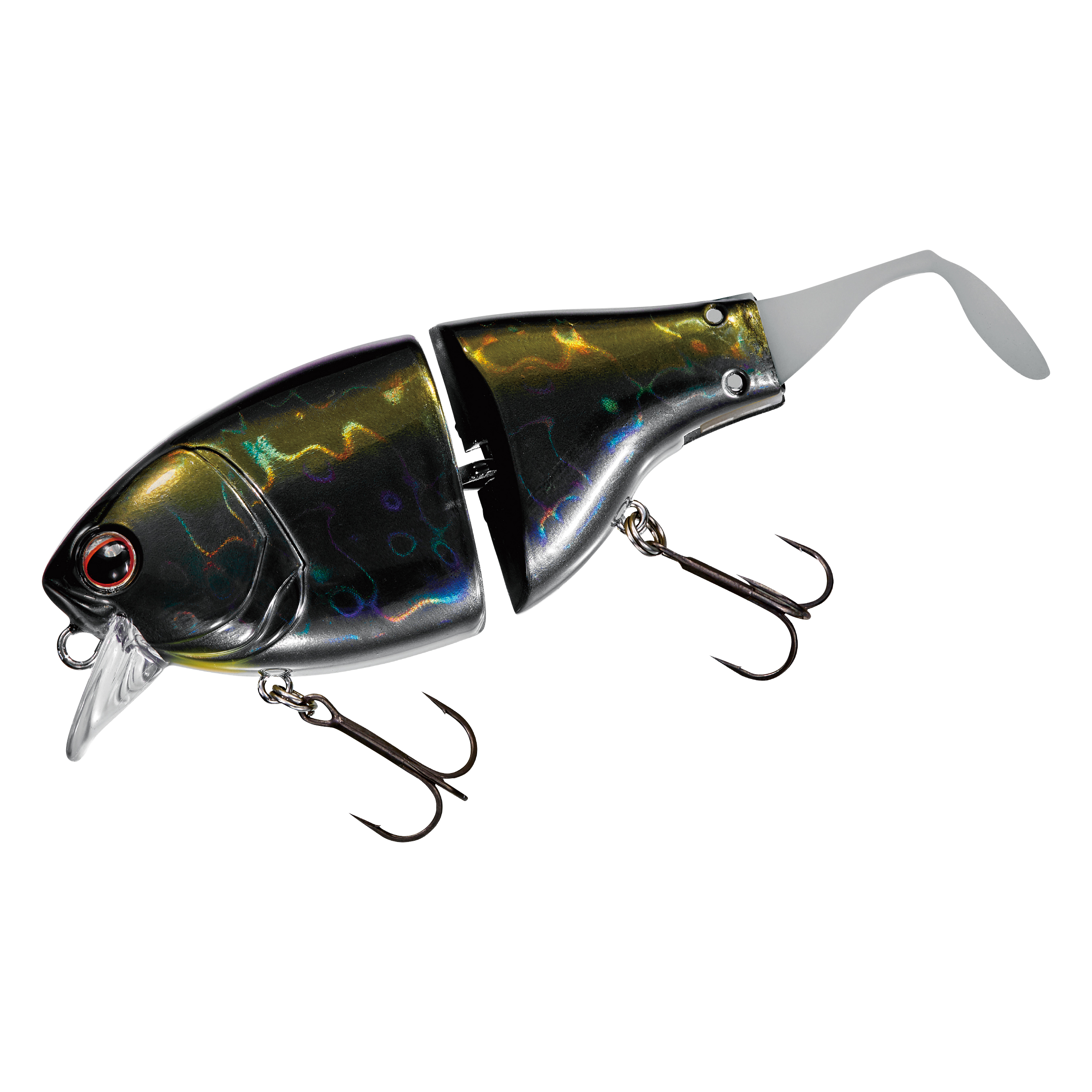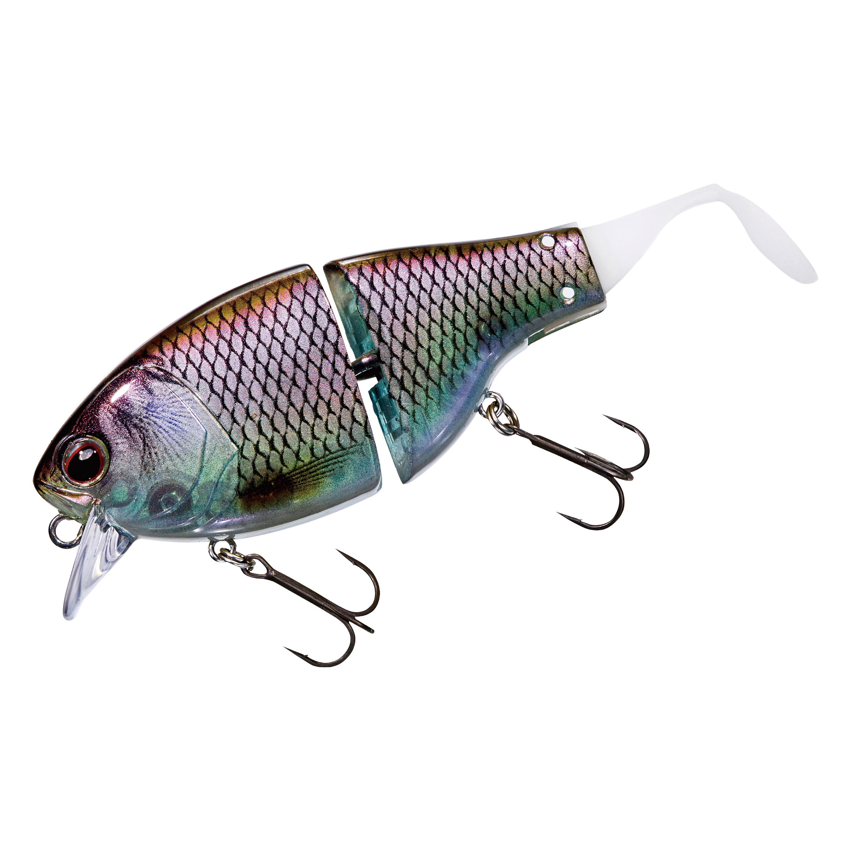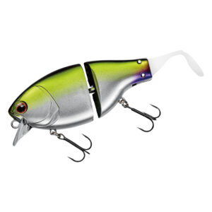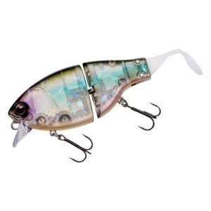 リトリーブでは、フラットサイドクランク特有のヒラヒラとしたアクションに加え、ジョイントとテールによる艶めかしいアクションで魚へとアピールします。ジョイント構造にすることで、超低速~超高速まで幅広いリトリーブスピードに対応します。ドッグウォークアクションからの高速リトリーブのような、スピードの緩急を使ったアクションでリアクションバイトを誘うことも可能です。
