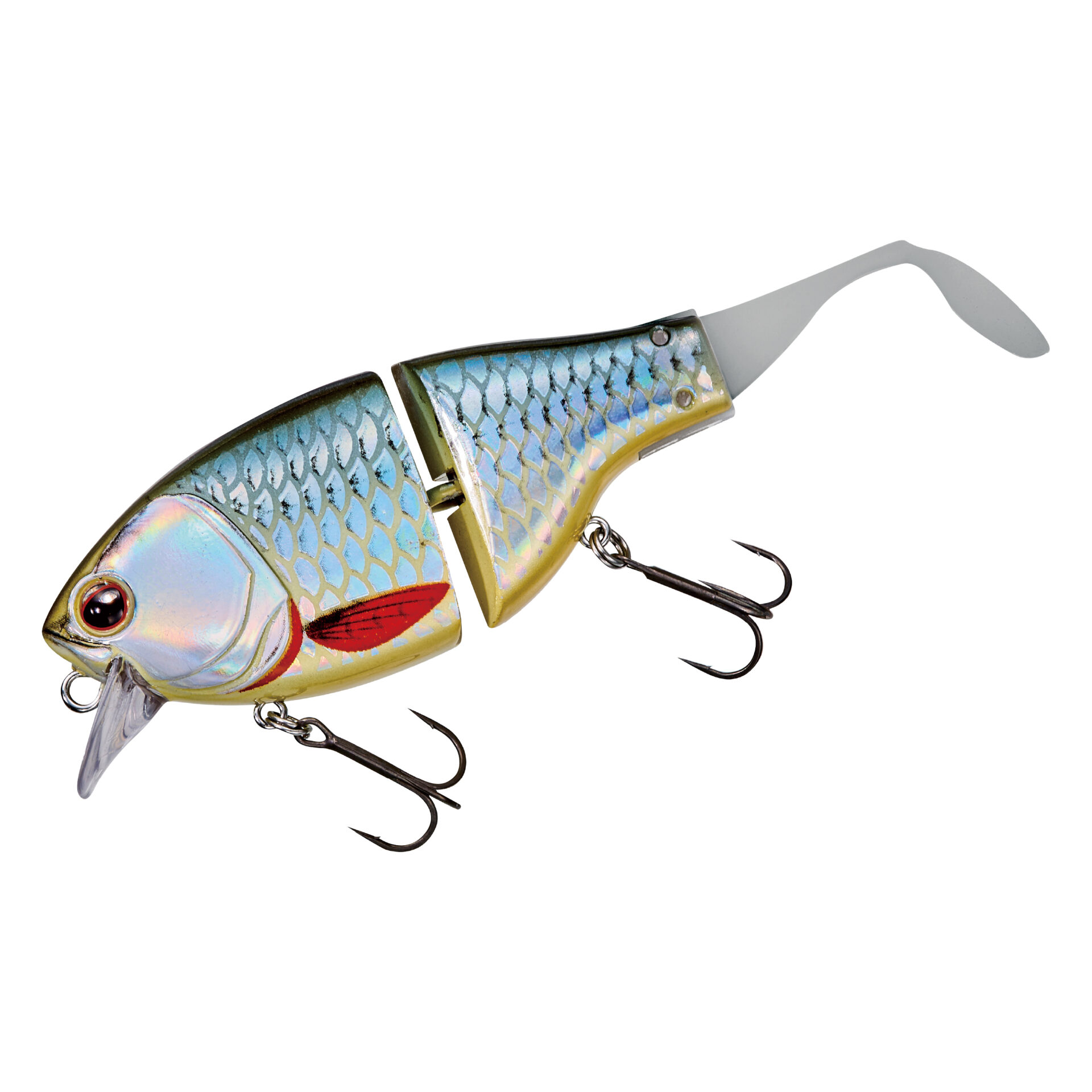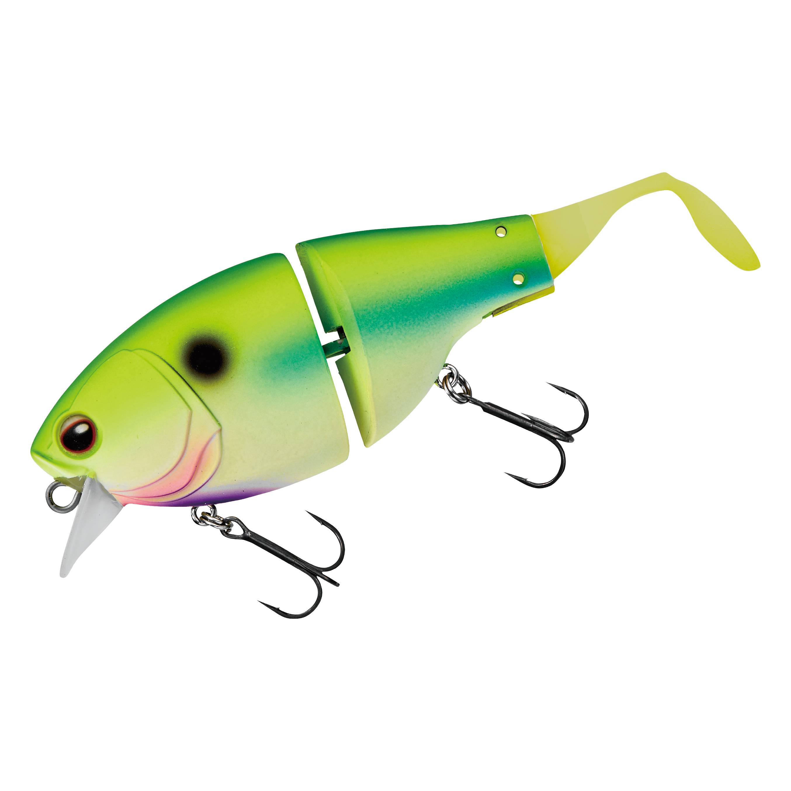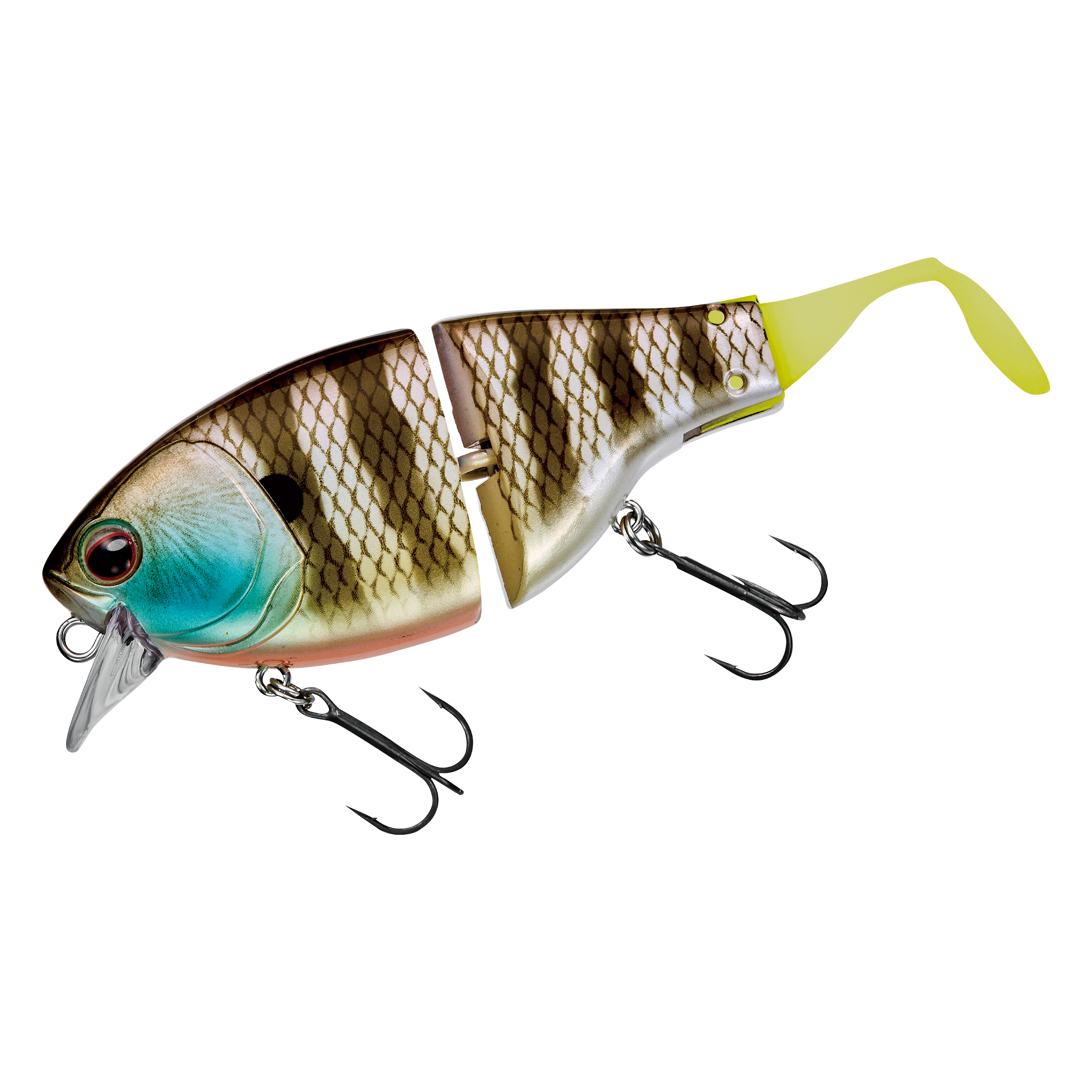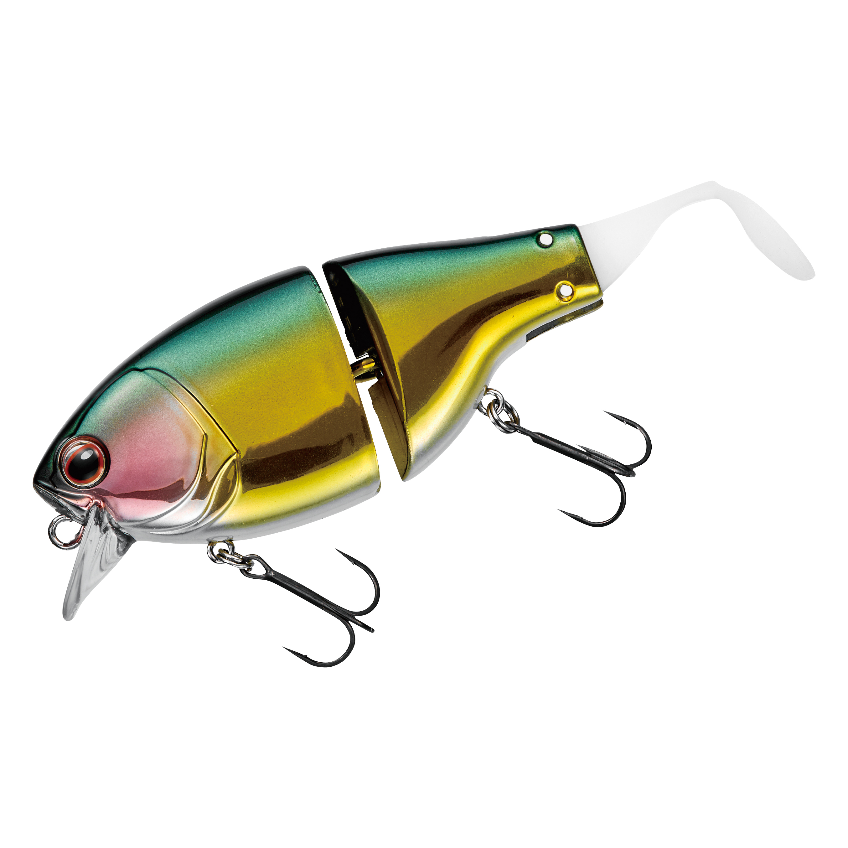 リトリーブでは、フラットサイドクランク特有のヒラヒラとしたアクションに加え、ジョイントとテールによる艶めかしいアクションで魚へとアピールします。ジョイント構造にすることで、超低速~超高速まで幅広いリトリーブスピードに対応します。ドッグウォークアクションからの高速リトリーブのような、スピードの緩急を使ったアクションでリアクションバイトを誘うことも可能です。