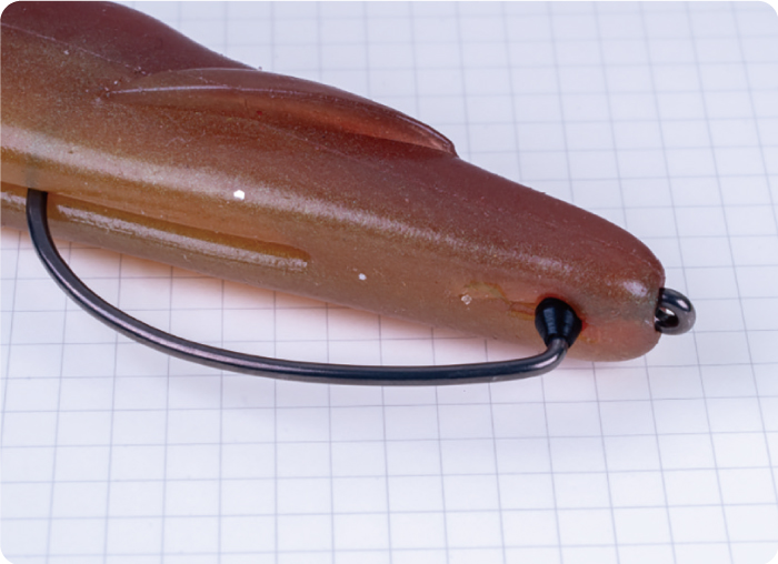 下部に設けられたフラット面で確実にワームをホールドするので、カバーへのアプローチなどでワームがズレるストレスを軽減します。