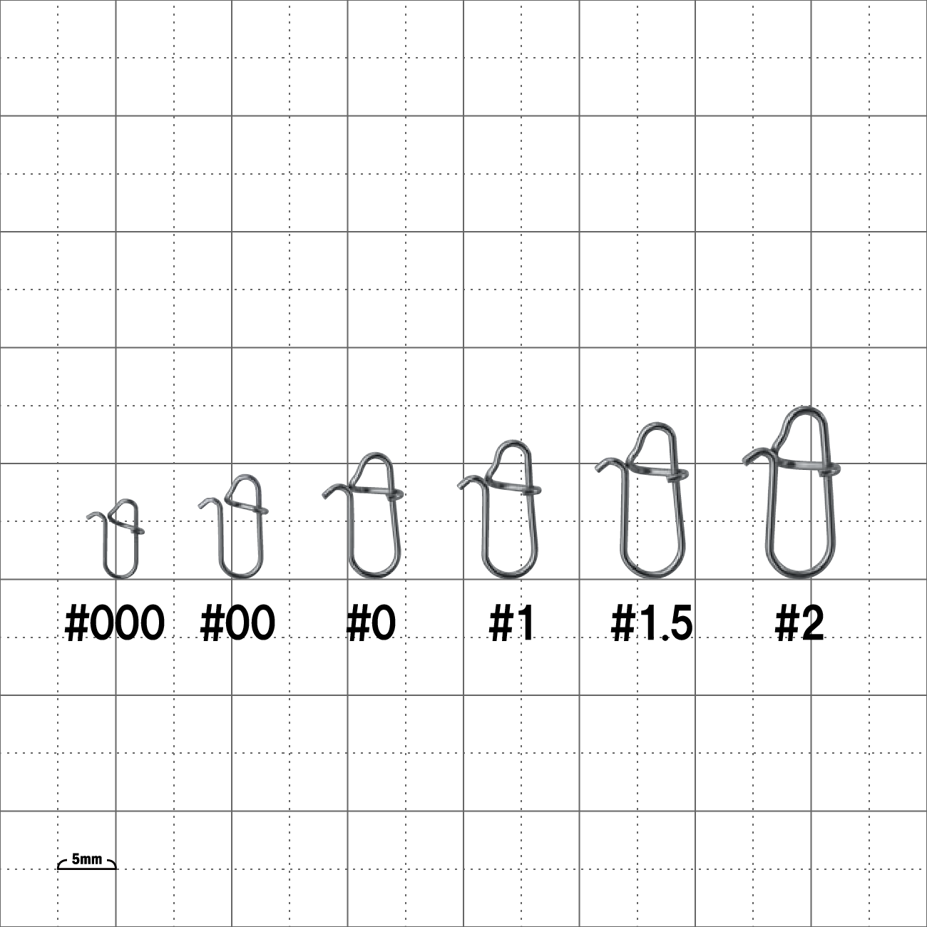 チタン形状記憶合金を採用し高復元力と高防錆を実現。各サイズで必要十分な強度を確保したバランス設計。