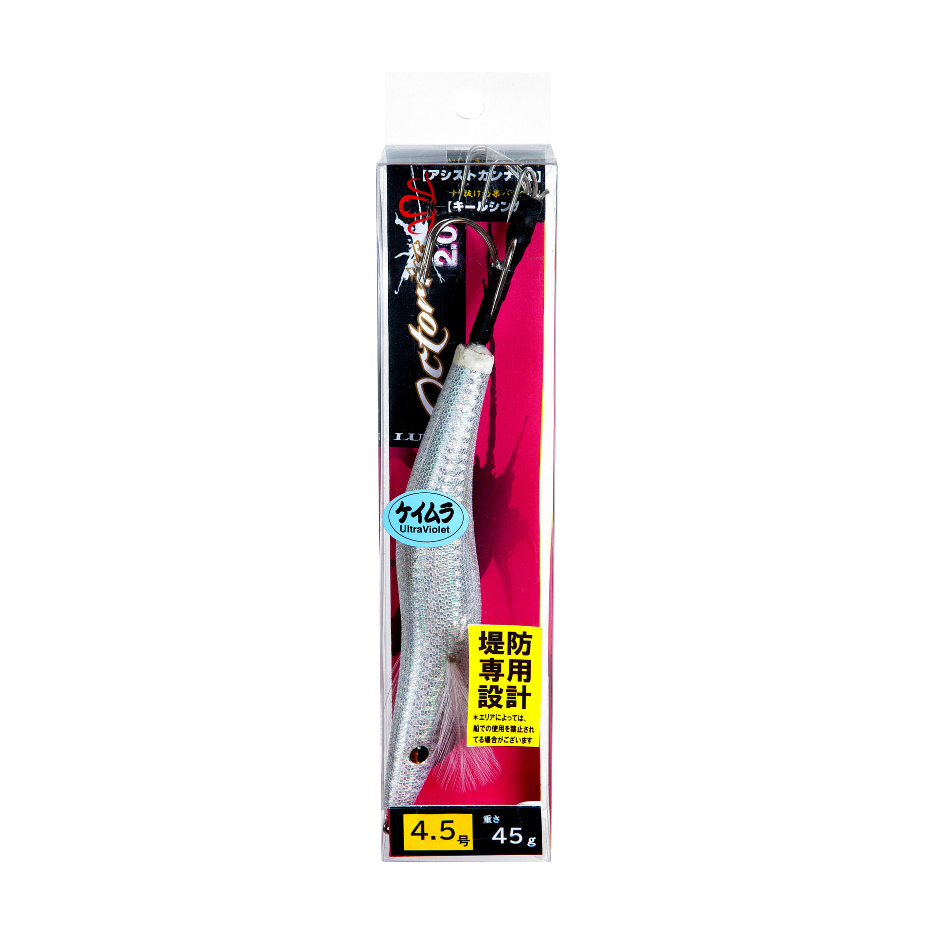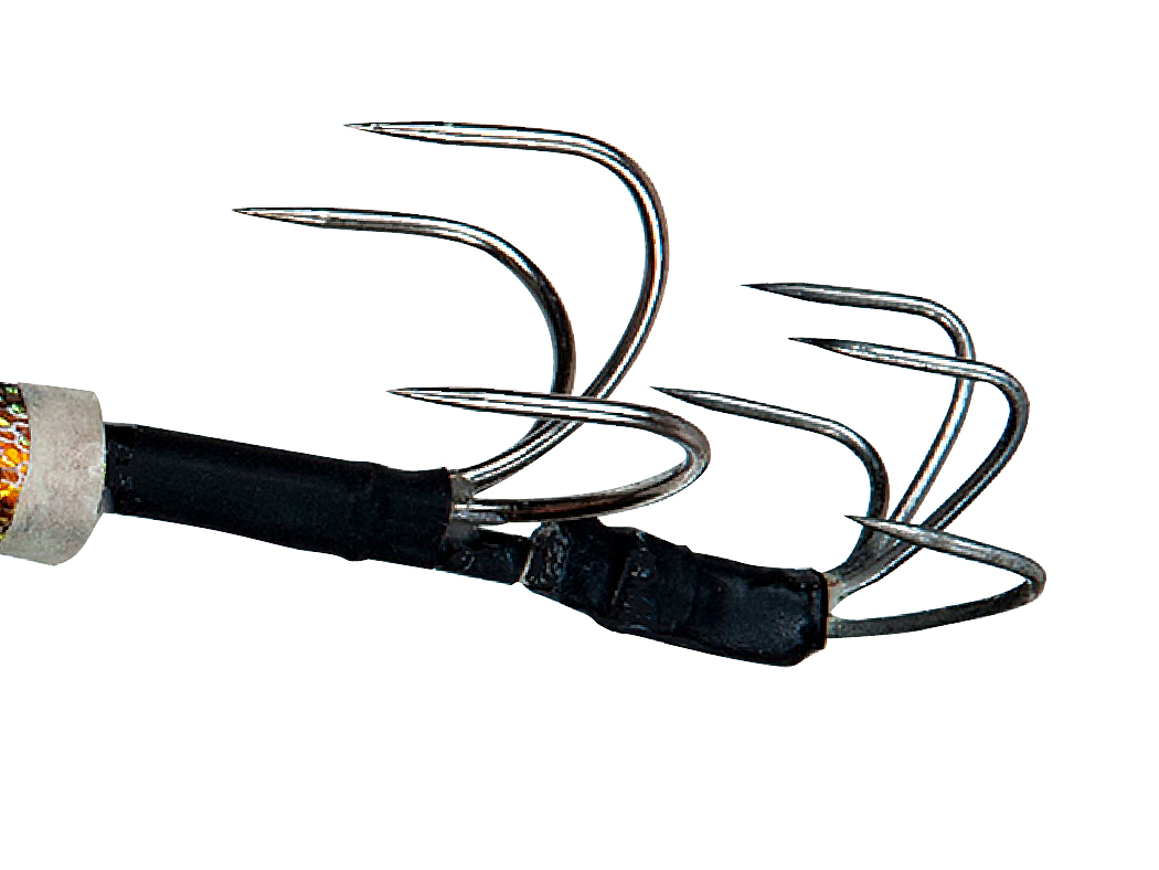 海底の石などの隙間にも入りにくく、根掛かりを軽減します。手前に強靭なバーブレス3本フックとその後方に半傘カンナのアシストカンナ2.0を搭載。手前3本フックで中型から大型タコをしっかりかけ、アシストカンナ2.0がタコのすり抜けを防止し、大幅なキャッチ率アップを可能にしました。ヘッドとの段差をなくしたシンカー形状のキールシンカーは、すり抜け効果をアップし、着底時とズル引き時の安定した姿勢をキープします。
