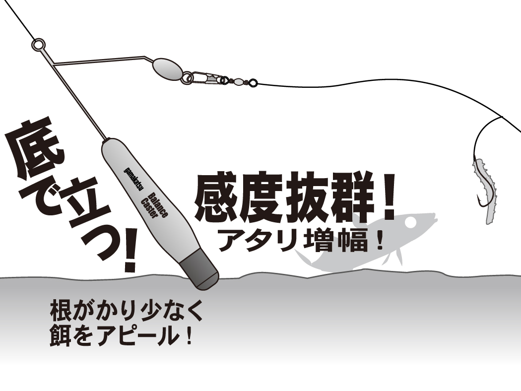海底で自立するため、根掛かりが少なく、アタリも明確に伝わります。天秤のアームに装着されたフロートにより、アーム自体も倒れることがなく常に仕掛をアピールします。