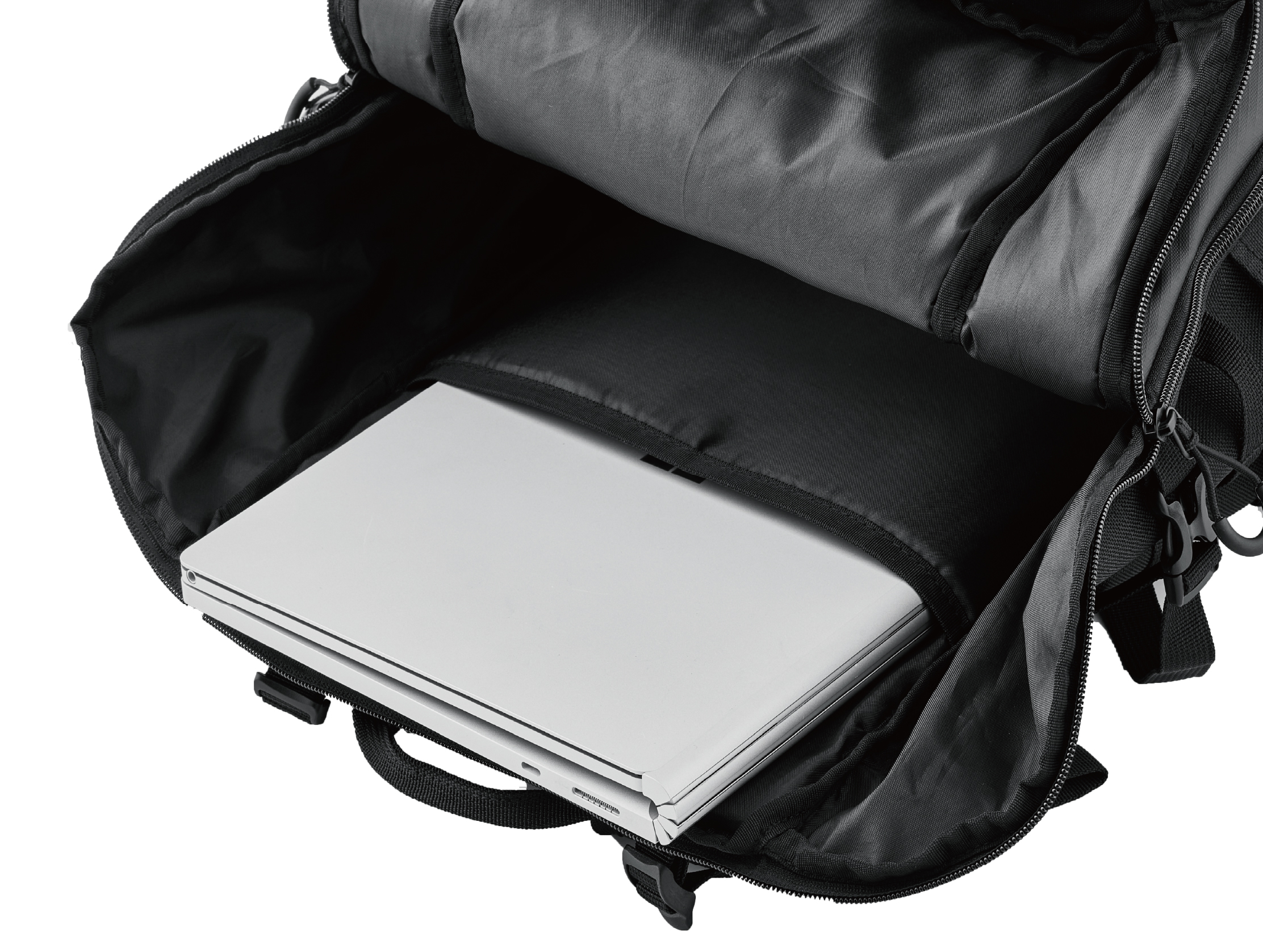 ●メインコンパートメントにはノート型パソコンが収納できるクッションポケットを完備。