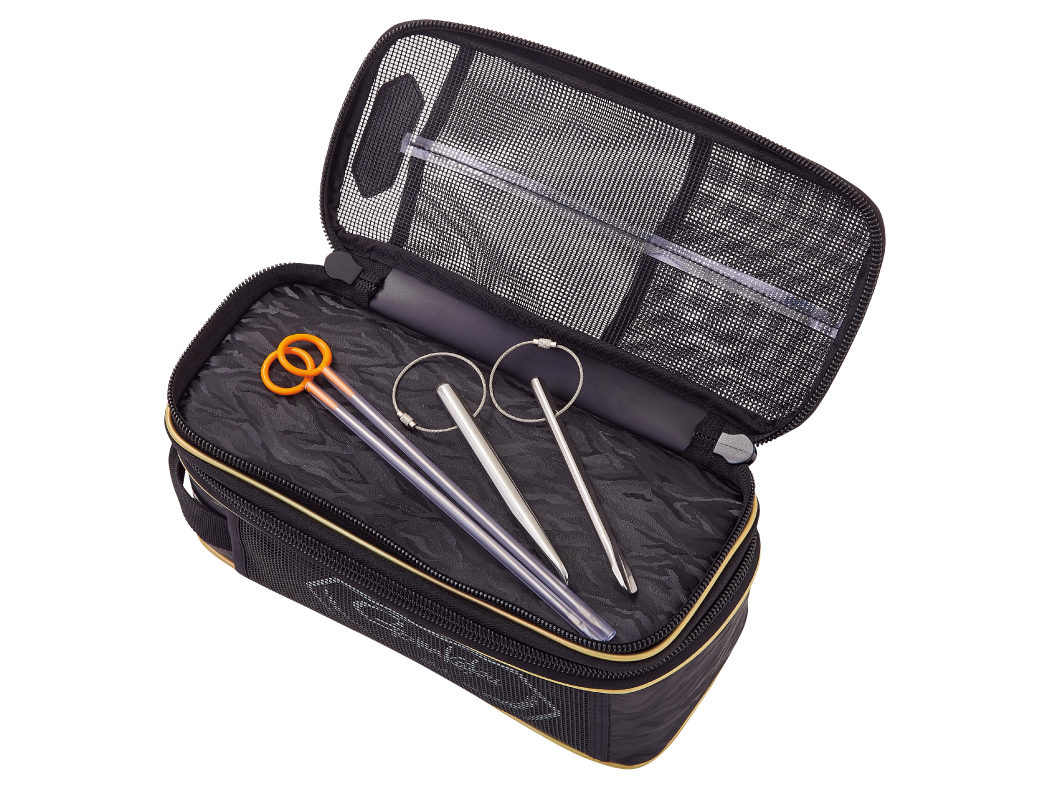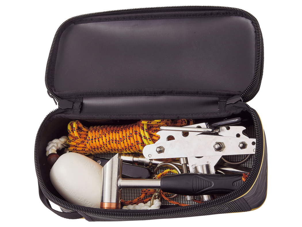 ●小物をまとめてスッキリ収納することができ、分別収納に便利な2層構造のポーチです。[磯(底物)ピトン、ハンマー、ハーケン、ウニ通し]などをまとめてコンパクトに収納が可能。