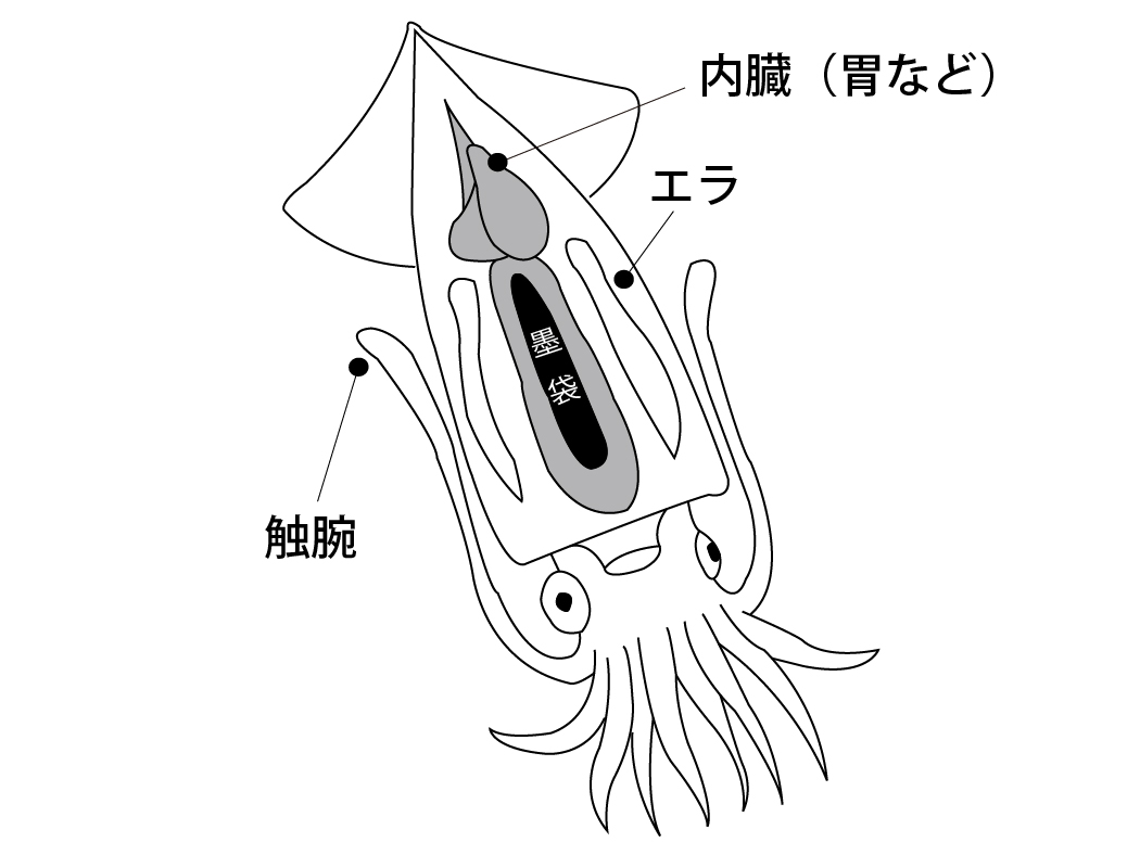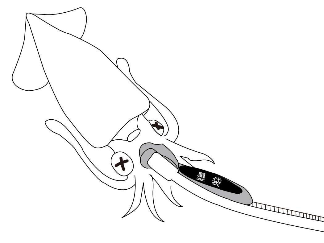 〈イカ墨袋の抜き方〉