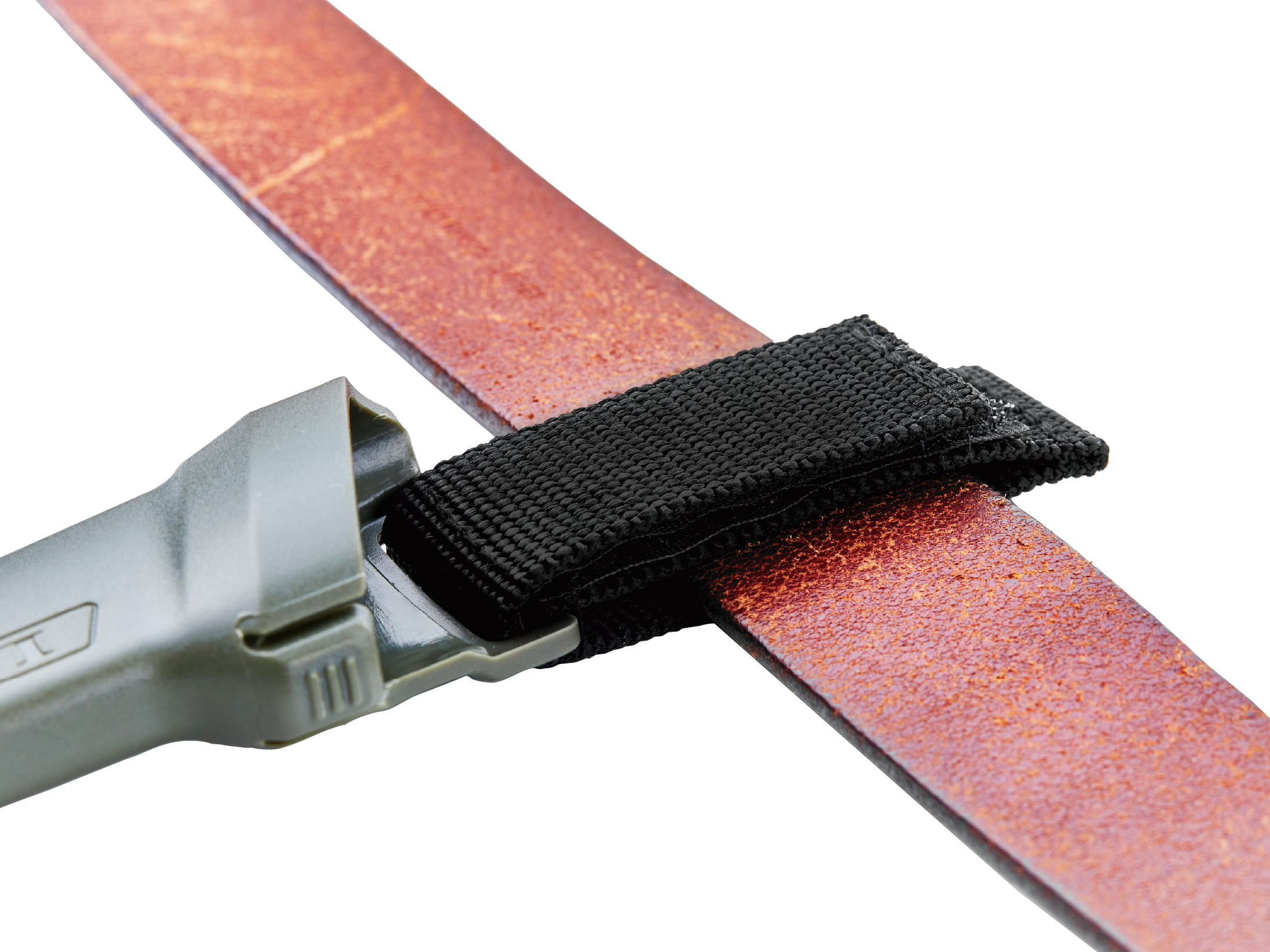 ●ベルト部にしっかりと取付け可能なナイロンベルトストラップ付シース。