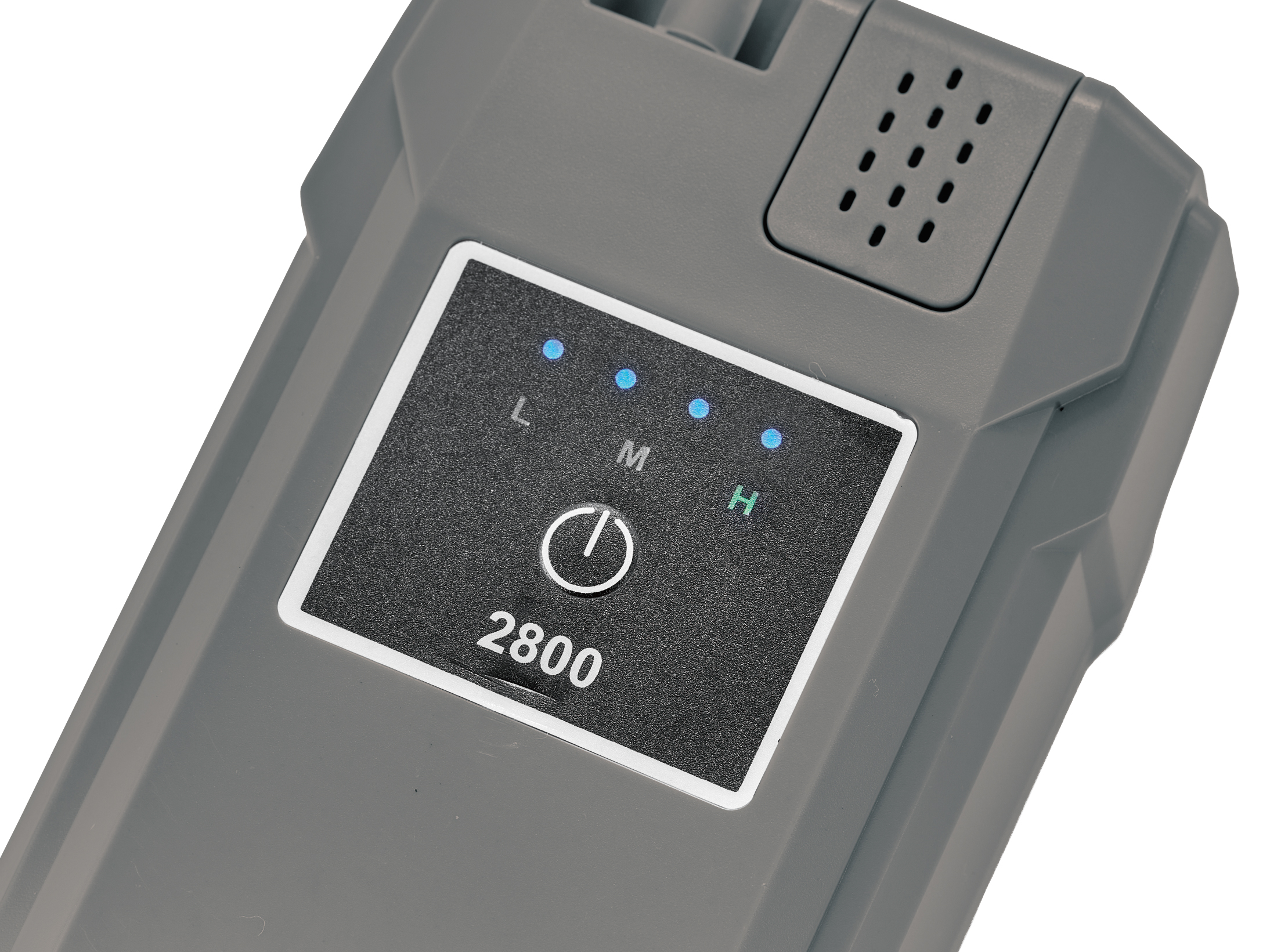 4.電源スイッチを1秒間に2度押ししてロック解除をし、それから押すごとにL(弱)→M(中)→H(強)→停止と変わります。