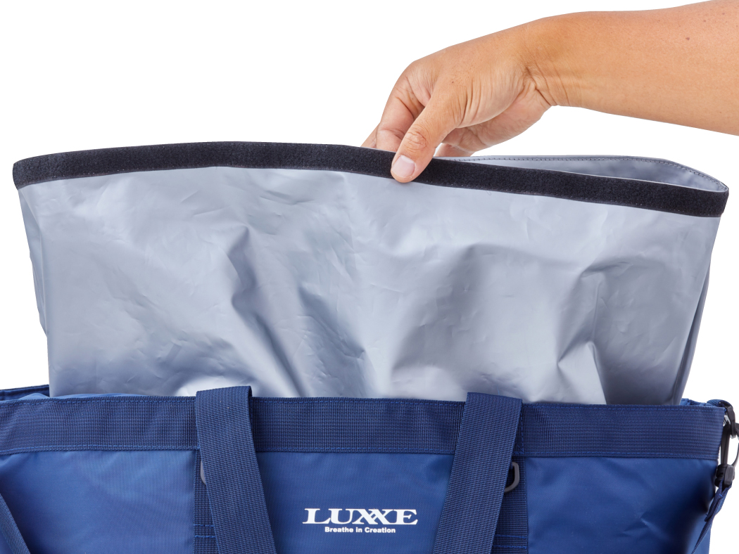 防水仕様のインナーで、濡れたブーツやレインスーツ等も収納可能。脱着式でお手入れカンタン。