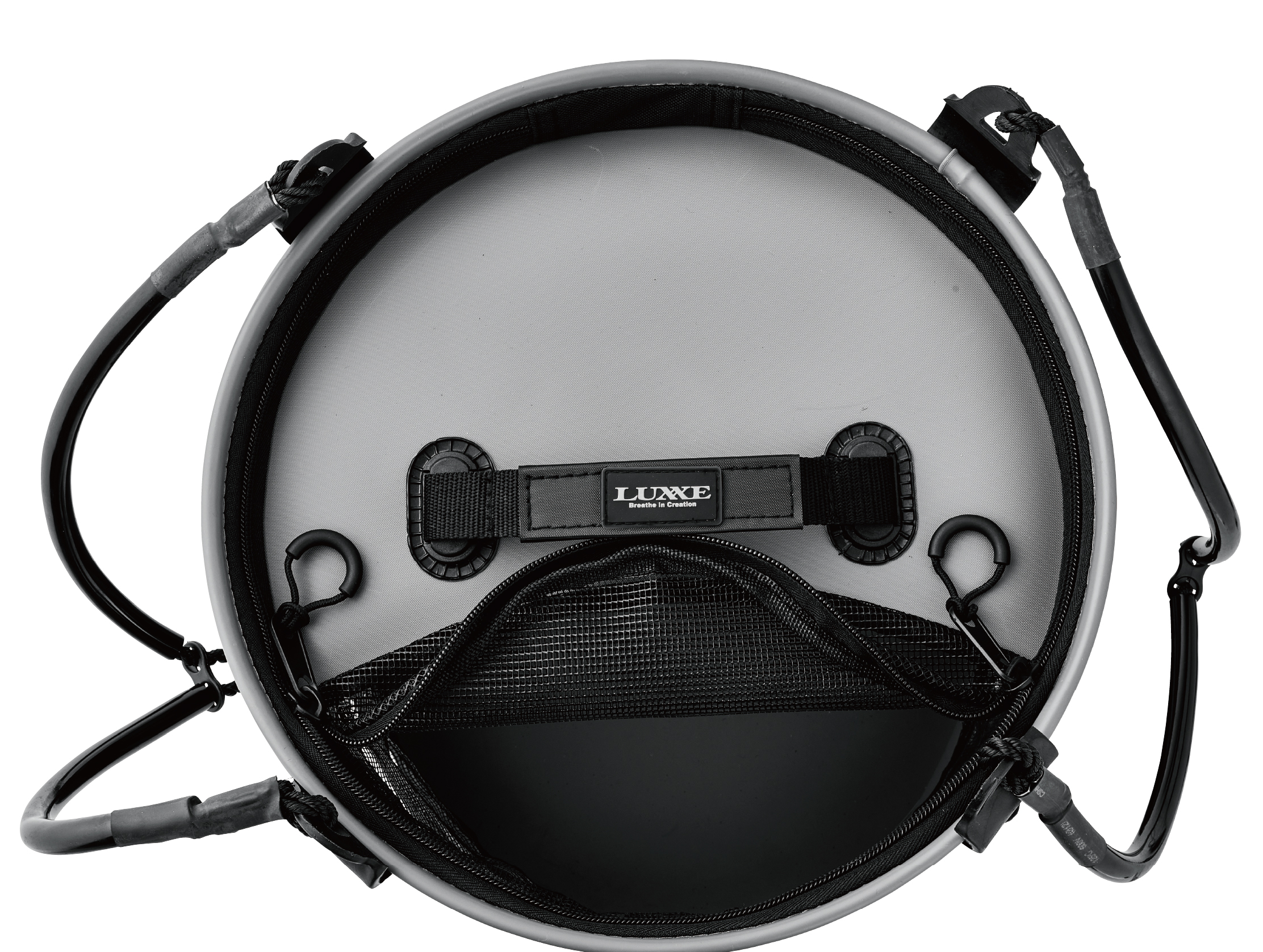上蓋はフルジップオープン可能で、頻繁な出し入れは楕円形開口部が便利。