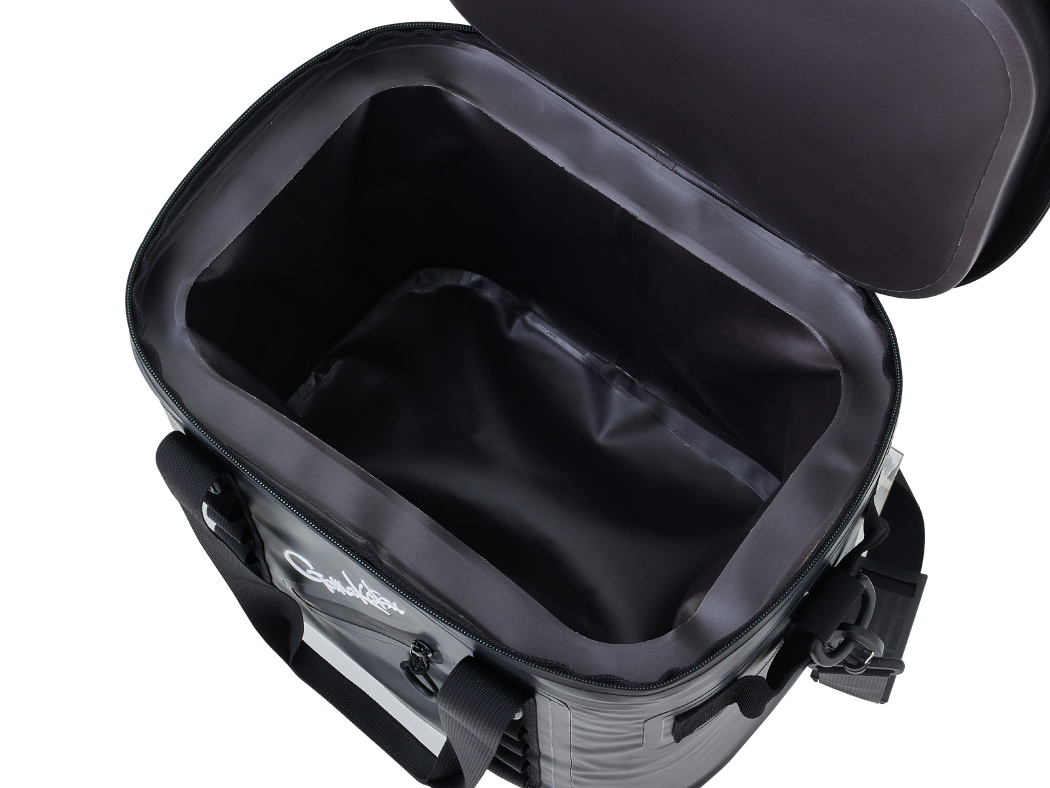 ●表面は汚れを落としやすく水に強いP.V.C生地を採用。シブキのかかる渡船時や雨天の釣り場で威力を発揮します。