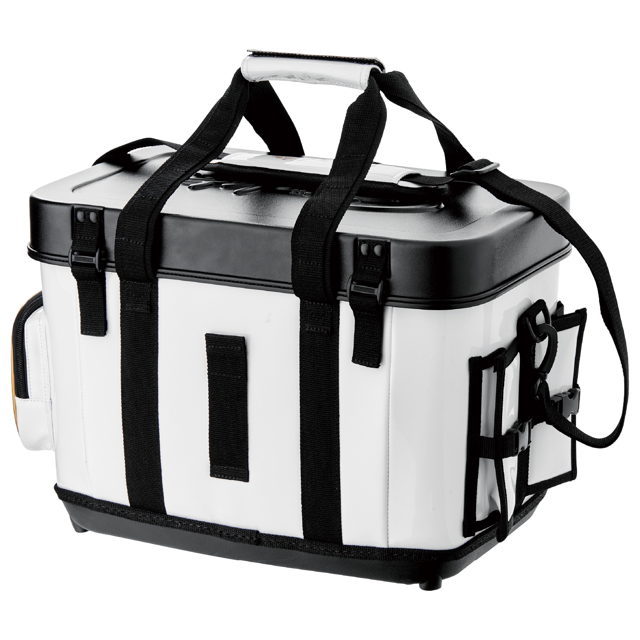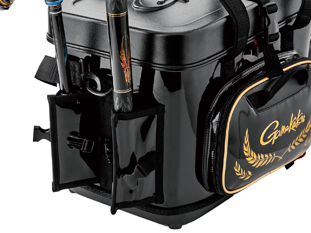 ※ロッドホルダーをご使用の際は、竿やタモの柄が破損する恐れがありますのでバッグの置き場や重量、風などにご注意ください。また長時間のご使用もお控えください。