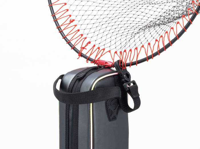 本体上部にはタモをセットしたまま固定が可能な「タモ枠固定ベルト」を付属。