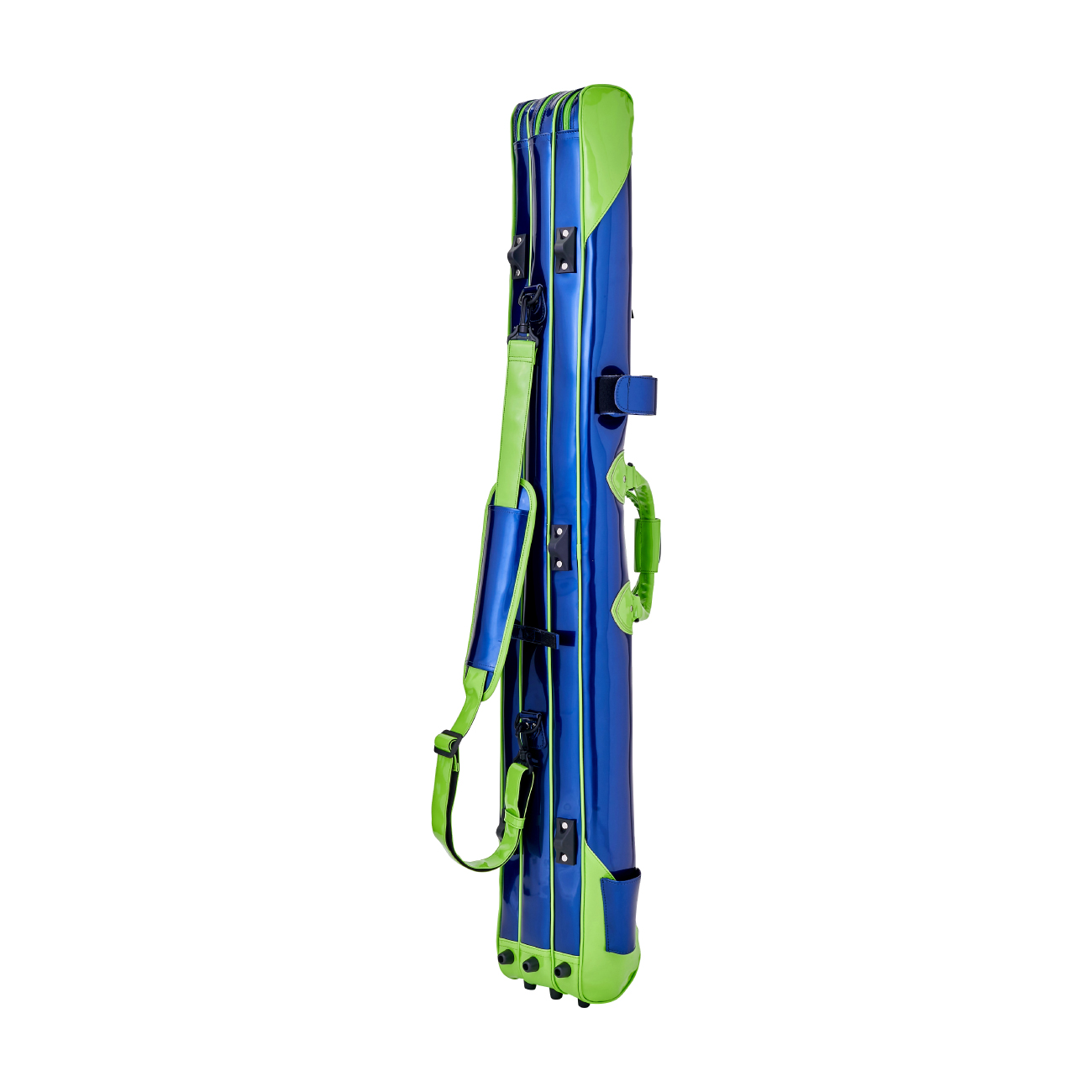 外側には、受け側+面ファスナーバンド設定位置を見直したパラソルホルダーを装備。重心をロッドケースの下側に寄せるよう固定位置を見直すことで、ロッドケースの先下がりを軽減します。
