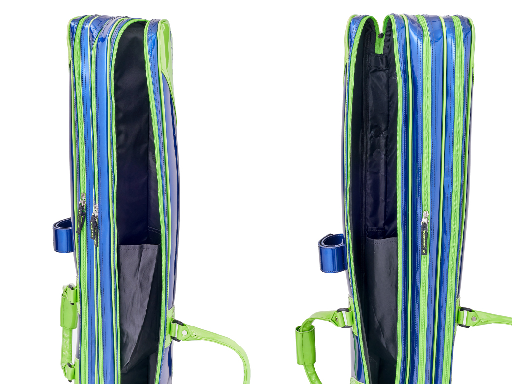 中央層には竿袋・上栓や小物の収納に便利な面ファスナーの小ポケットを配置しています。