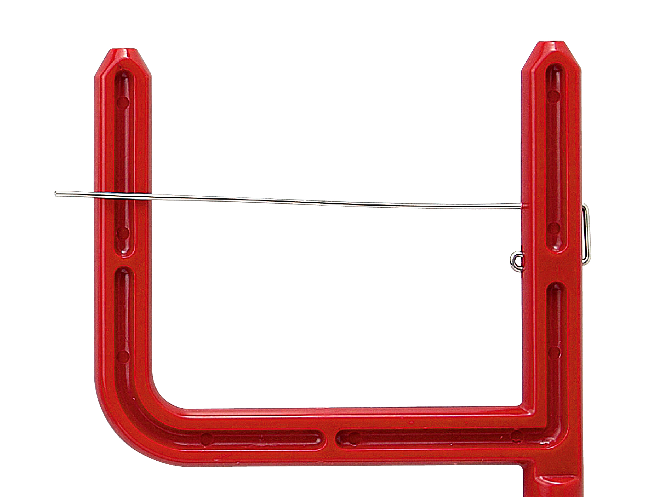 ●サビキで釣れた際に、仕掛の下端を掴み竿先にテンションを掛けて“おさかな外し”の外しピンに通すだけで鈎にかかった魚が連続して外れていきます。