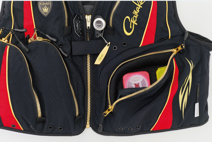 ●本体が保水しないため、瀬渡り時の抵抗も少なくなり、ベスト自体が重たくなるのを防ぎます。