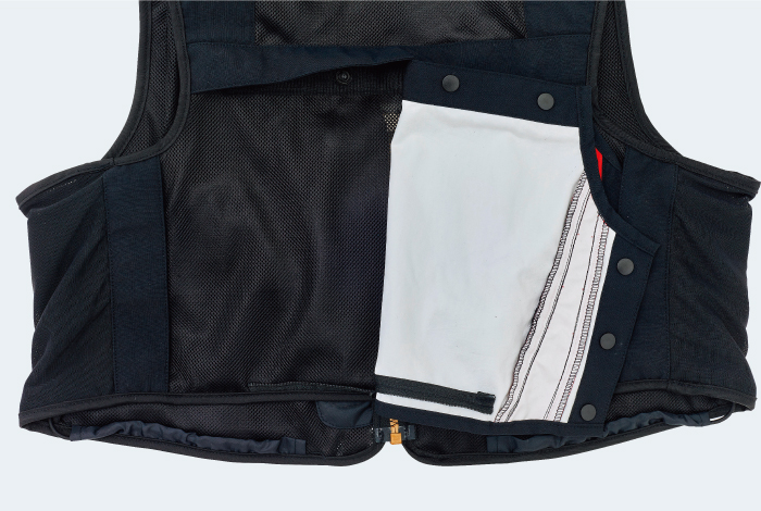 ●肩内側にベストのズレを防ぐ滑り止めテープを装備。