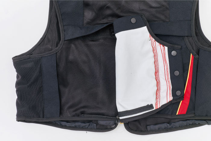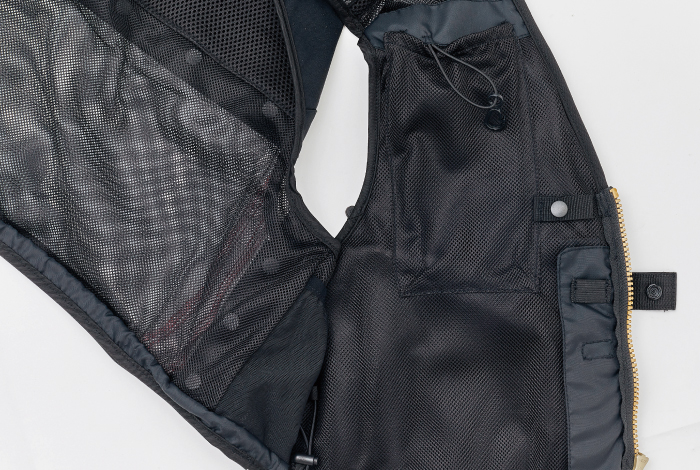 ●肩内側にベストのズレを防ぐ滑り止めテープを装備。