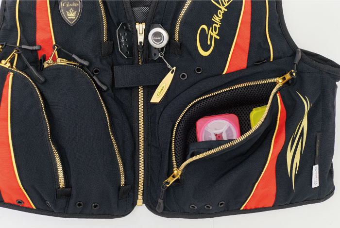 ●本体が保水しないため、瀬渡り時の抵抗も少なくなり、ベスト自体が重たくなるのを防ぎます。