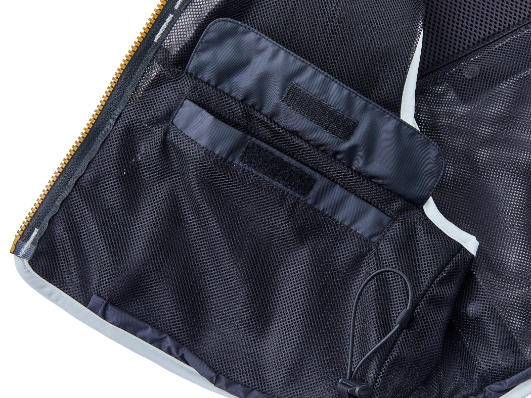 ●内側にメッシュポケットを装備。面ファスナーフラップ付で収納物の落下を防ぐ。