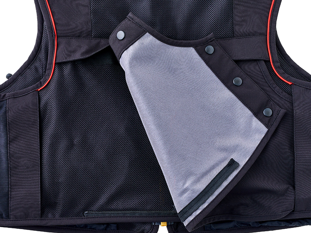 ●肩内側にベストのズレを防ぐ滑り止めテープを装備。