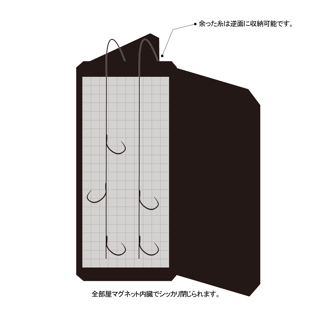 ●両面磁石の設計で、持ち運びに不便するチラシなどの長い糸付鈎がしっかり固定して収納可能。余った糸は、逆面に収納可能です。